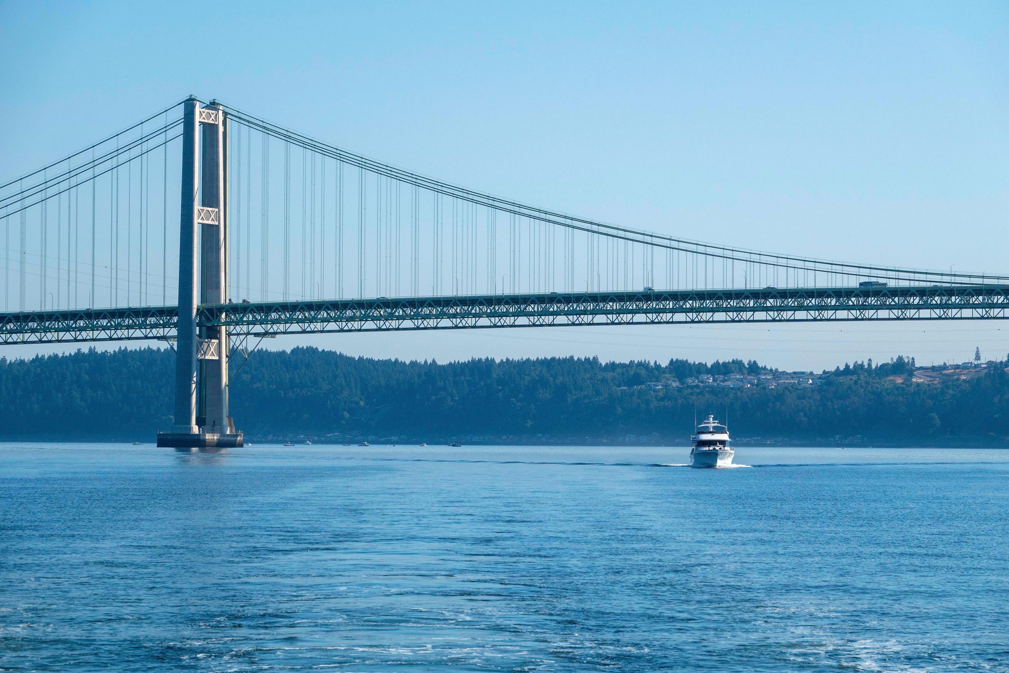 After a nice overnight in my hometown of Gig Harbor, and a beautiful sunset, we headed south towards the Narrows Bridge.