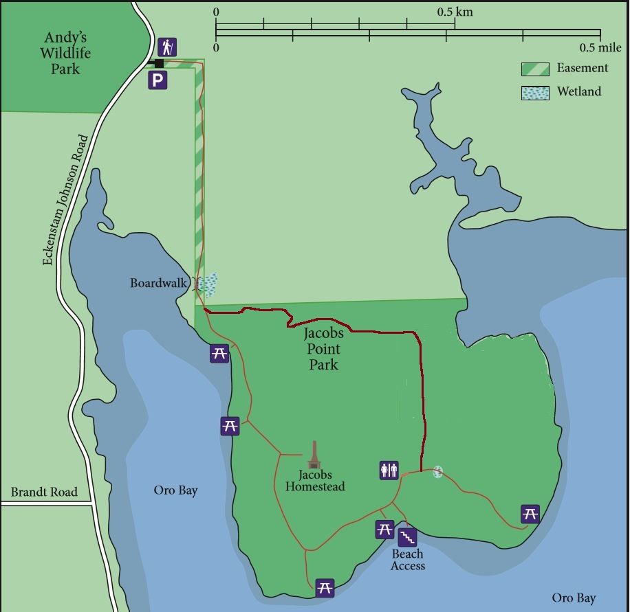 The Jacobs Point Park surrounds one part of the bay and is a great place to explore. I've beached my dinghy near the "Beach Access" spot and been able to go ashore and walk around. There are several other spots to the left of that beach (you can see a dinghy in some of the drone shots) that can be used as well. Around the right side of the park and back into the inlet is also a wonderful spot to kayak or paddle board and watch the wildlife.