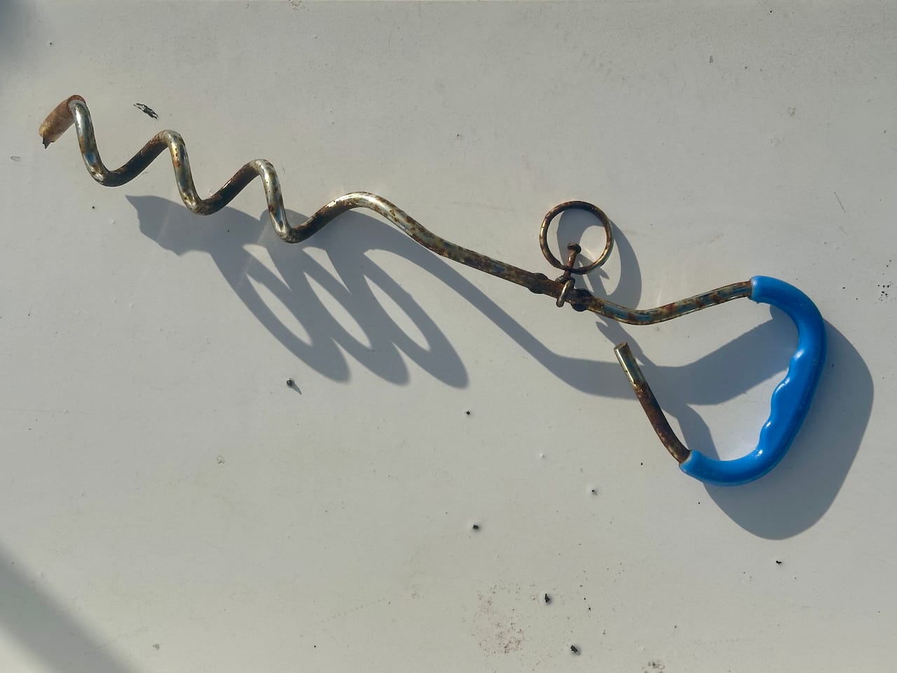 I also carry a dog stake that I can screw into the beach, but I would prefer to tie to something big ashore if at all possible. And yes, I know the one above is all rusty - it's only a couple of years old, and purchased off of Amazon. I've had a lot of poor luck with "stainless steel" products from non-mainstream brands...
