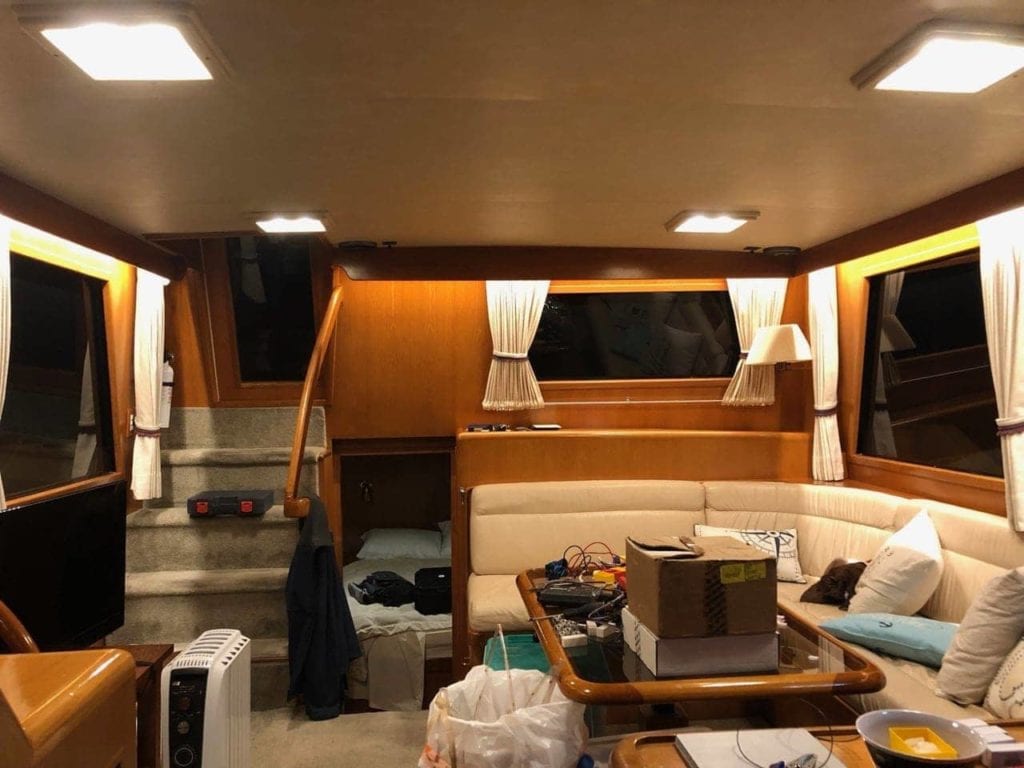One of the first projects I had on my list was updating the majority of the lighting throughout, as much of it was original or had been updated with LEDs with very harsh color profiles. I did similar projects on Grace with both Halogen light replacement with CREE LEDs and Ambient LED cabin lights. Rendezvous has a bunch of overhead lights that are thankfully not halogen, but older BAY15D non-indexed bulbs, which are pretty easy to get a hold of. I’m still playing with options from Dr. LED, LunaSea Lighting, and several other vendors for those lights.