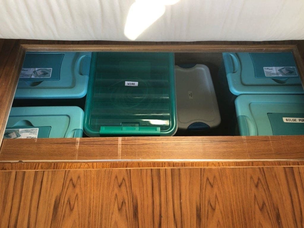 I continue to be amazed at the sheer amount of storage space we have aboard. I have already emptied almost my entire storage unit into carefully organized bins throughout the boat in places that the crew would never need to access. Even after that, there is plenty of storage for longer term cruising including areas like a full pantry, tons of space in the galley, copious drawers in the staterooms, and more. It is so nice to have everything aboard where I can find it if I want to work on a strange project, or if I need some random spare part.