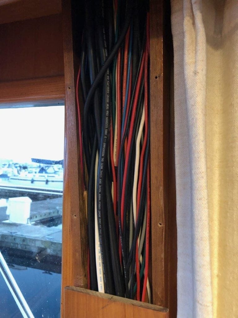 Continuing on the theme of wiring, much of my time has been tracing wires and figuring out where everything is going. I have a lot of things to install, and I want to ensure I have chosen the right places, and have access for future upgrades and projects I already have in mind. Much of the cable runs are easy to get at, save some in the flybridge eyebrow area that require a small child to reach. Compared to a sailboat, though, this is like paradise.