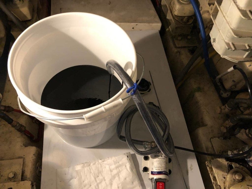 The other big project was a full oil change of both main engines and the generator. I purchased a new Marco gear driven oil change pump to help with the job, and a few extra buckets and containers. The pump worked flawlessly, and made the whole process pretty easy. I had looked at the Reverso pumps which are faster and have some nicer features, but at double the cost I just couldn’t justify it. I expect to only be changing the oil every 100 hours or once a year, so perhaps in a year or two I can justify a full central Reverso system, but not now!