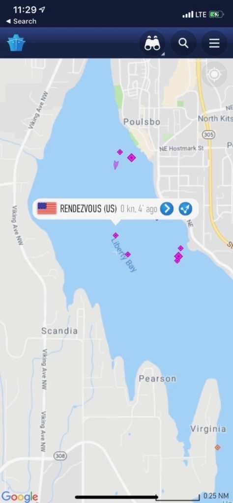 We decided to cruise from Elliott Bay Marina to Poulsbo and anchor there. One of the other projects I was able to complete in a short time is to install a Vesper XB-8000 Class B AIS transponder I had in storage. I used the lower salon driving station VHF radio and antenna along with a splitter to get things installed. I will hopefully be testing some new Class B SOTDMA 5W AIS transponders soon which will fit here nicely.