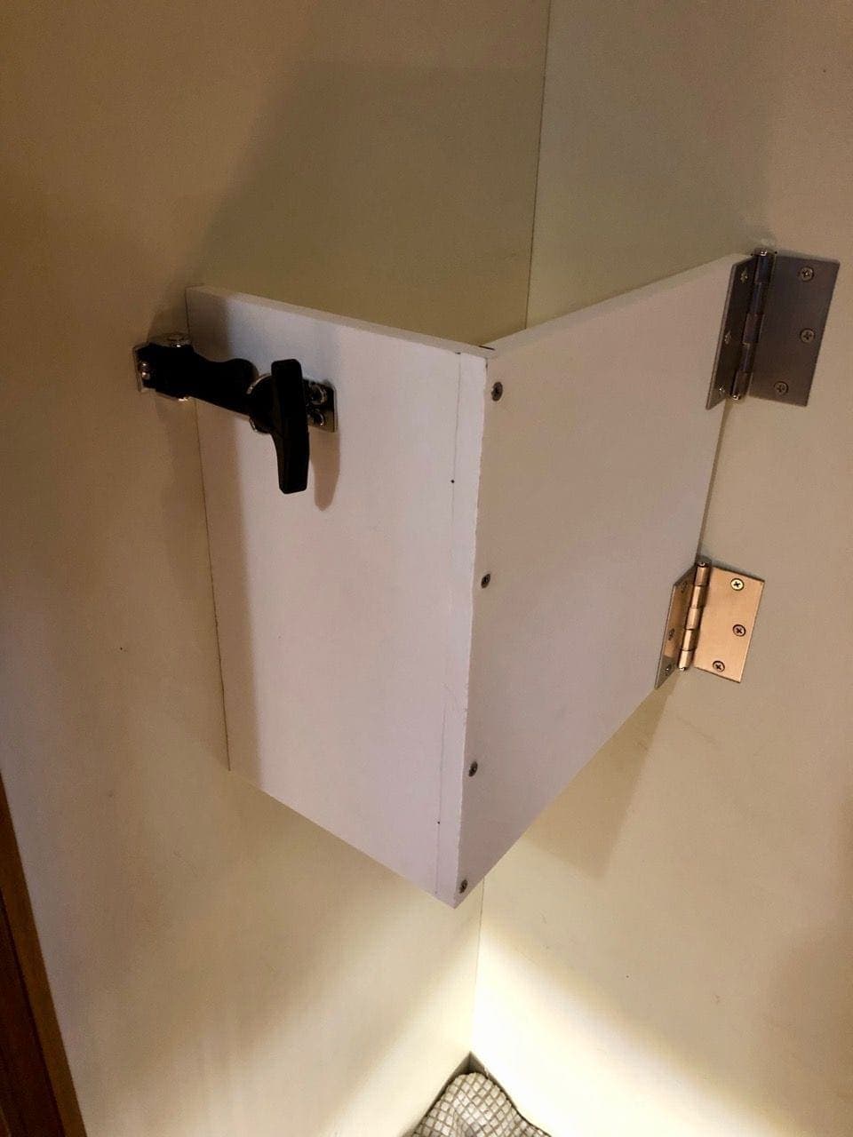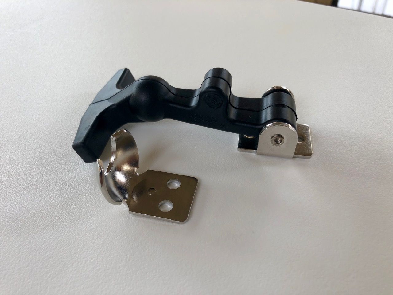 To attach the shorter portion to the wall and keep the piano secure, I planned on using draw latches. I found a really awesome one from Southco that was the perfect length and could be oriented at 90 degrees at one end, which I needed for my design. I bought two of them to ensure I had a nice secure setup.