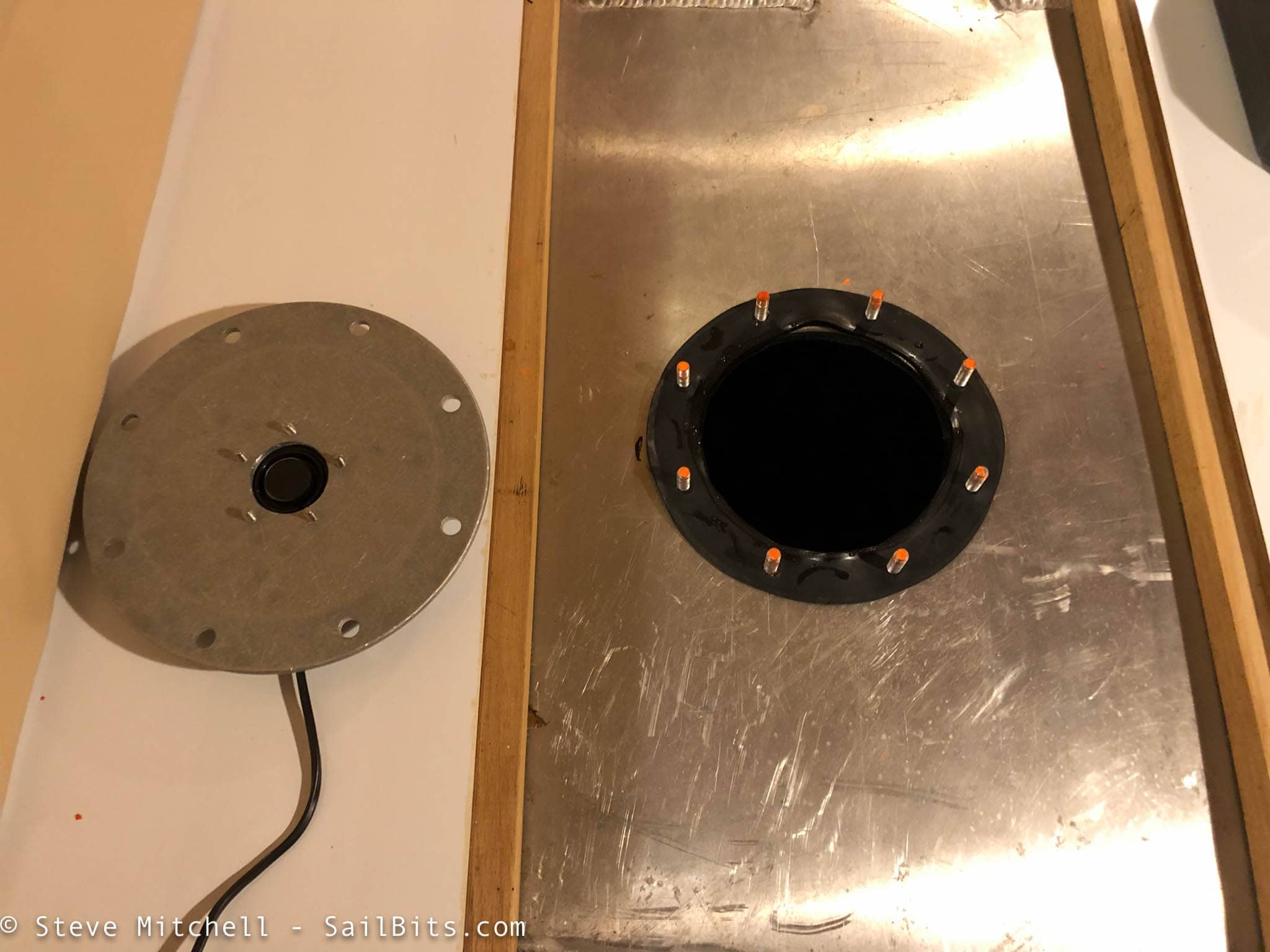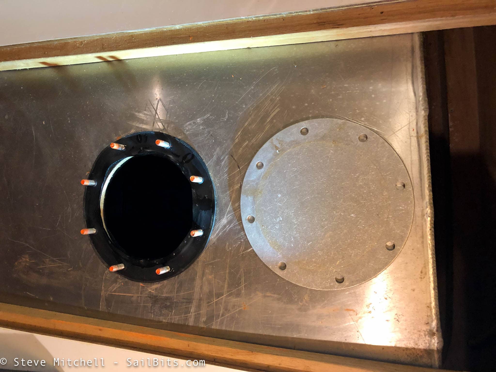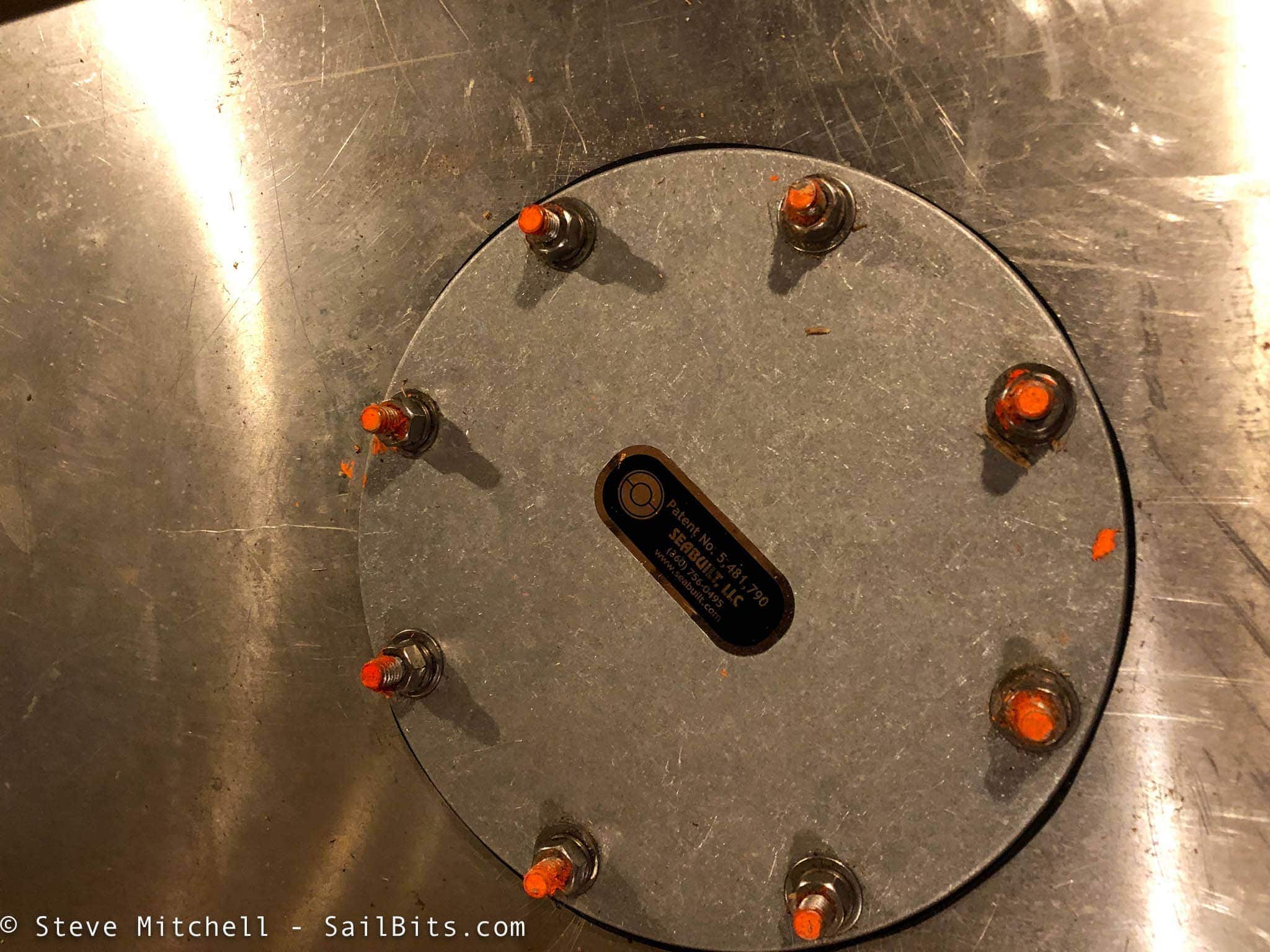 Then one by one, I drilled out holes for the bolt pattern for the sensor. It’s important to align the rubber gasket correctly, as it only goes one way – Maretron use a wire tie and tag to warn you of this. A quick run through with the correct sized tap, and the holes are ready to receive bolts.