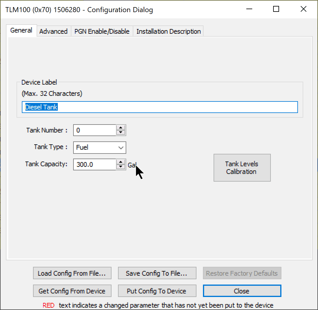 The next step involved configuring the tank sensor on the NMEA 2000 network with my Maretron USB 100 adapter and N2KView software. I could have also used my DSM display, but I find N2KView much easier to use. I set the label, tank number, tank type and overall tank capacity.