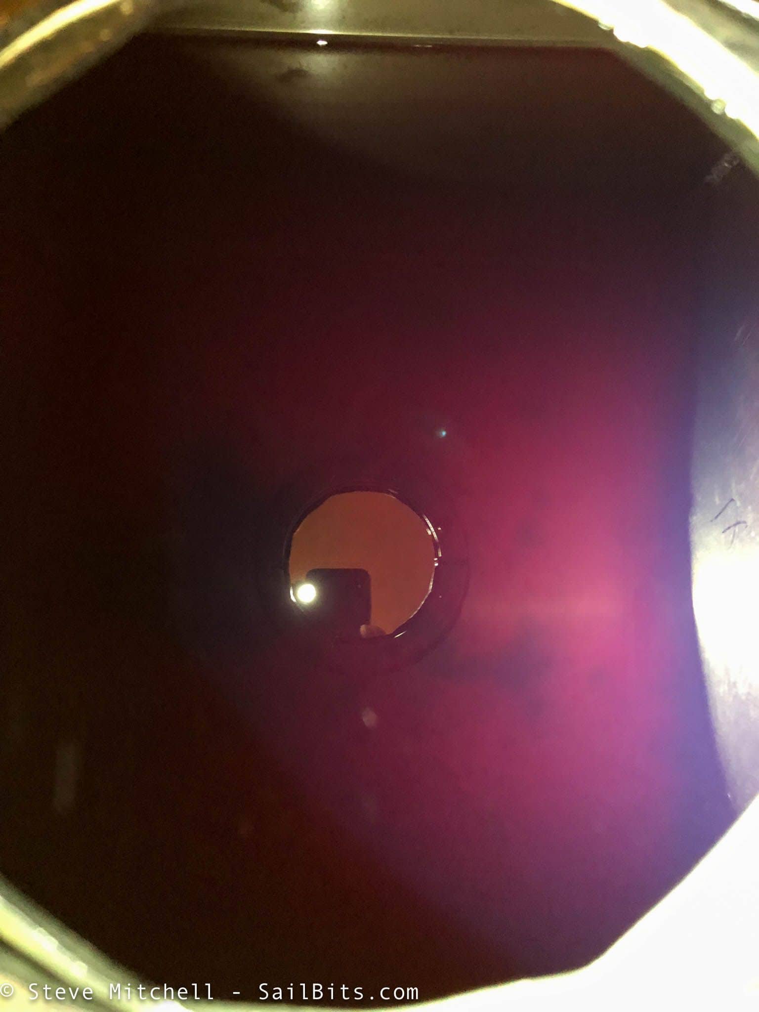 While I had it open, I looked around inside the tank – it looked extremely clean, had great baffles in good places to slow down any waves/churn while underway. Just don’t drop anything (like your phone!) down here!