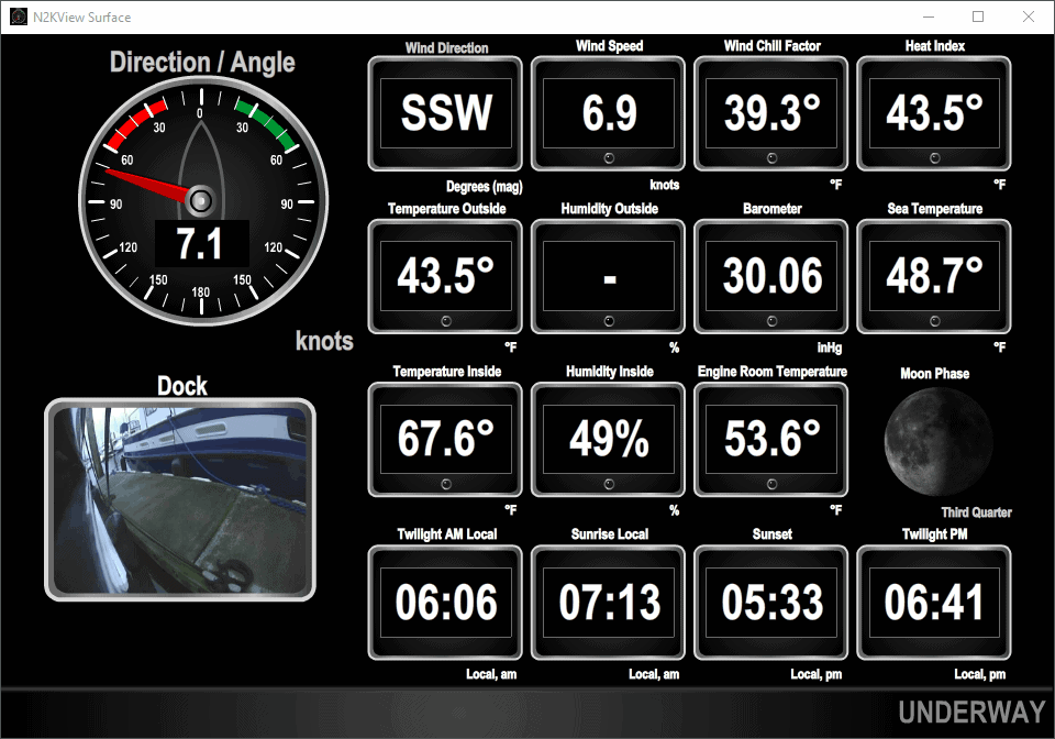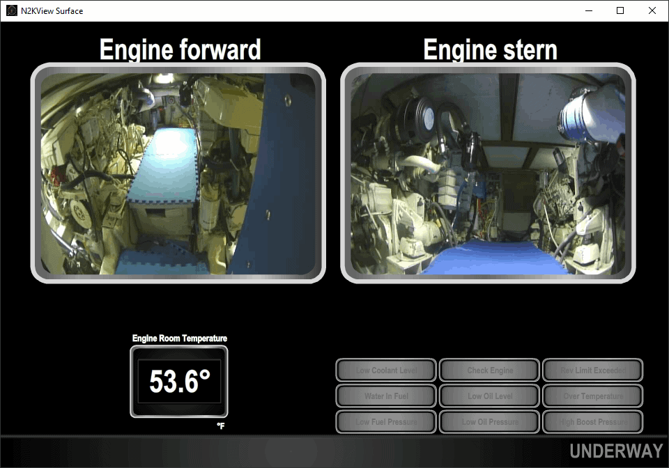 From the lower helm, I can use Maretron N2KView on the PC monitor to see both cams, engine room temp, and various alarms.