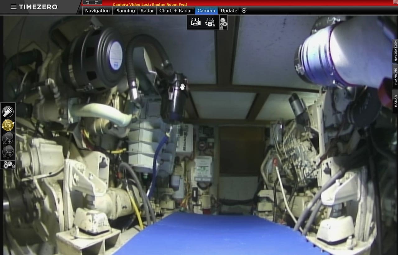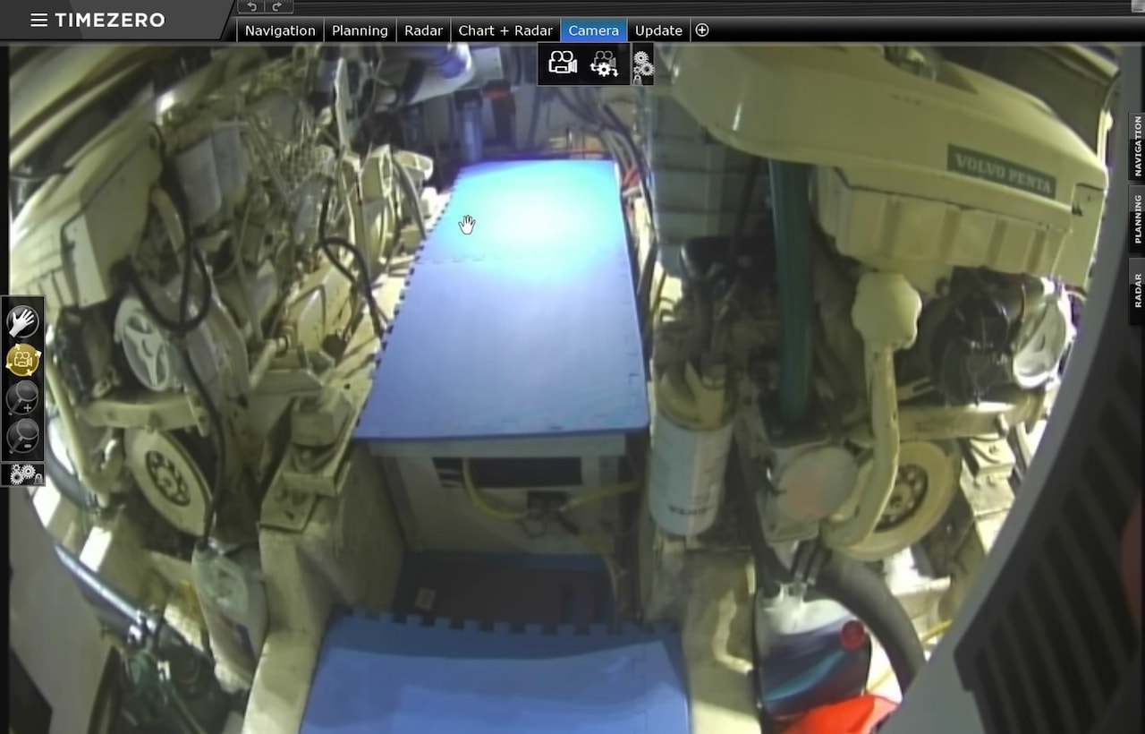 Most of the time I use these views up on the flybridge on one of the TZT2 MFDs when I’m underway. I can flip up a screen to see both views just in case I hear something odd or to check on Bert, Ernie or Oscar (our engines and generator).