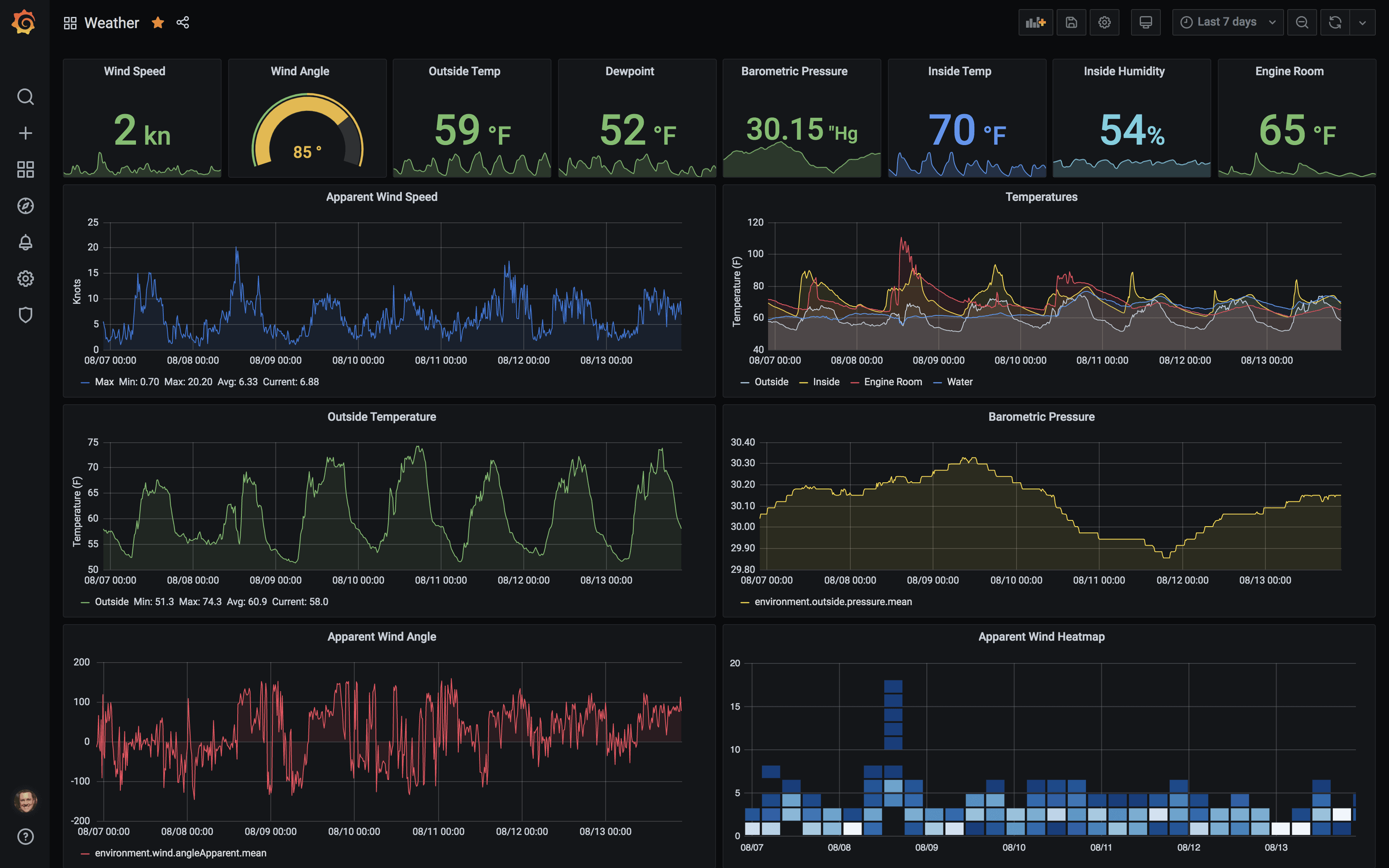 I use this dashboard while at anchor so the little stat boxes as a way to see the current conditions very quickly. I use the lower graphs to look back at the wind the last few hours, or to look up a storm or something weeks later.
