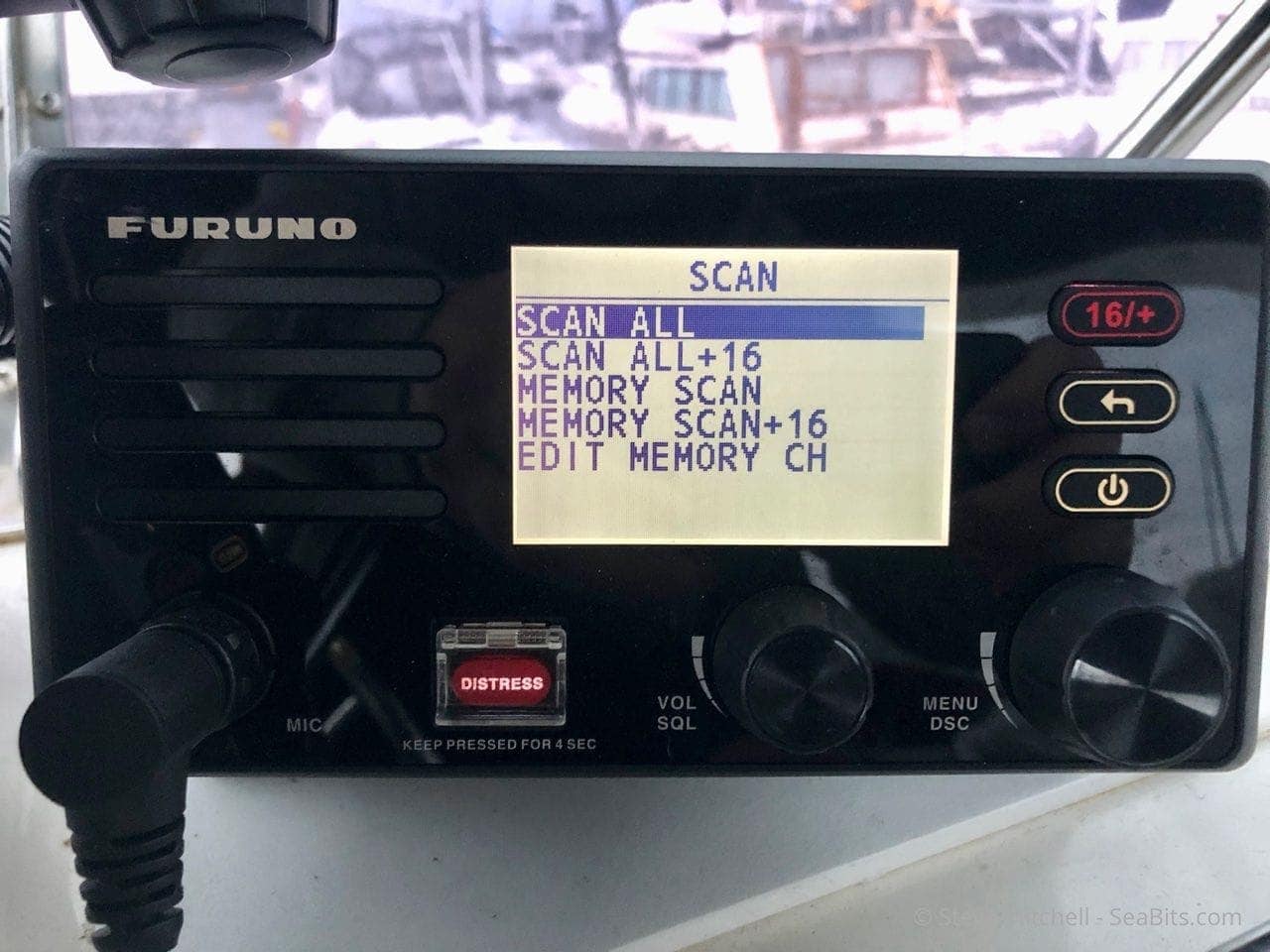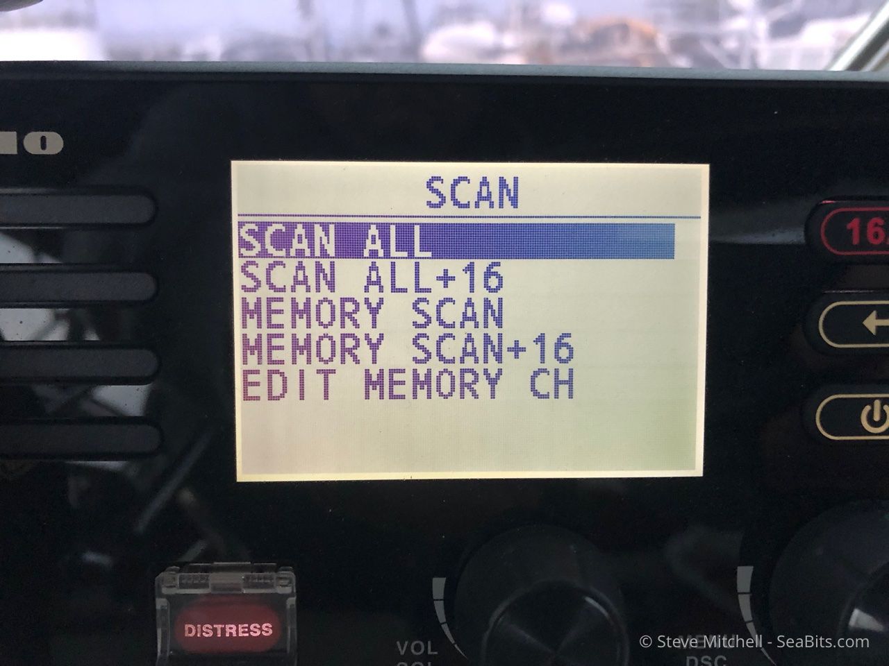 The scan behavior of the FM-4800 works for me very well. You can choose very quickly what you want from the menu above. I usually have a pre-programmed list of memory channels for the area I’m in. In my home area, that is channel 13 (ship-to-ship for the big stuff moving around in the bay/channels), 14 (vessel traffic services for Puget Sound), and one working channel – 68 or 69. So I choose Memory Scan + 16 and off I go. This is probably the most used menu item that I click into every day.
