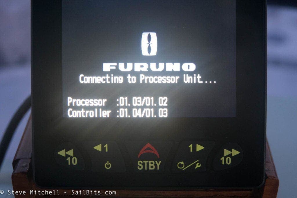 Unlike older control units which were directly wired to the processor unit, the NavPilot 300 unit searches the NMEA 2000 network for the processor when first starting up. I have noticed that sometimes this can take up to 30 seconds, and in rare cases, the search failed. I do have an older version of software, and will be upgrading it as soon as the rest of my Furuno stuff arrives.
