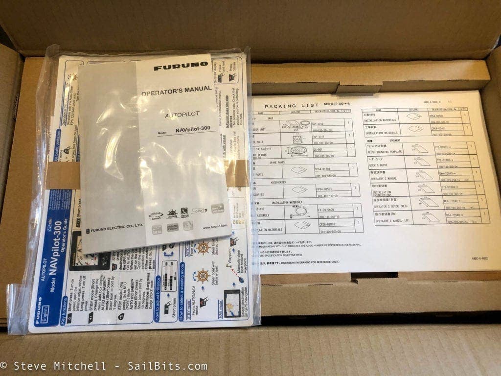 I ordered the NavPilot 300 bundle with the PG700 heading sensor from The GPS Store. This bundle included the NavPilot 300 itself, and the venerable PG700 heading sensor, each in their own box. The NavPilot 300 is packaged just like everything else I’ve seen from Furuno – fantastic boxes and components, along with clear lists of everything included.