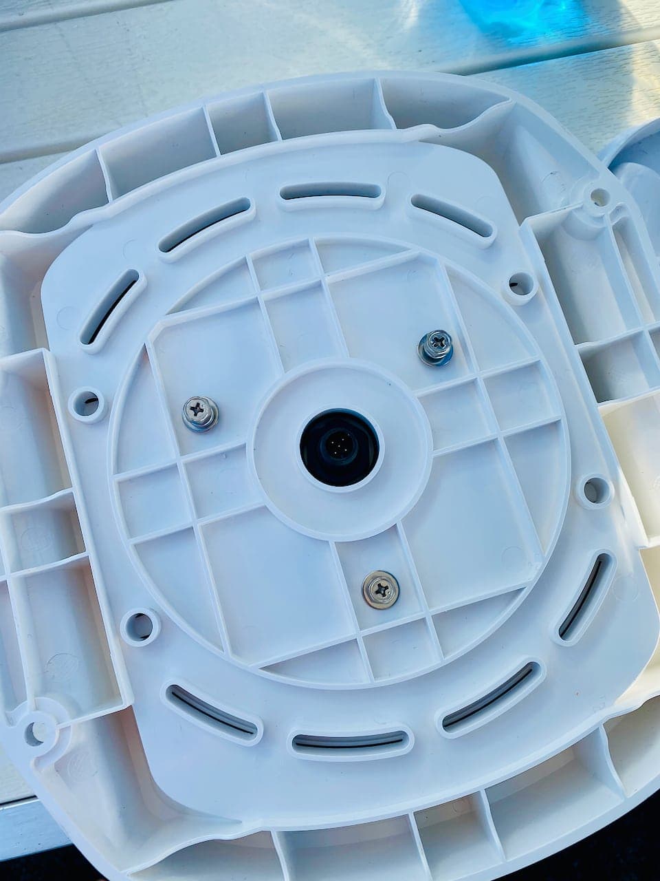 There’s also a smaller rubber washer that goes between the top half of the compass, and the mounting bracket. You can just barely see it around the NMEA 2000 connector. You can also see the three screws that I’ve installed to hold the compass to the mounting bracket.