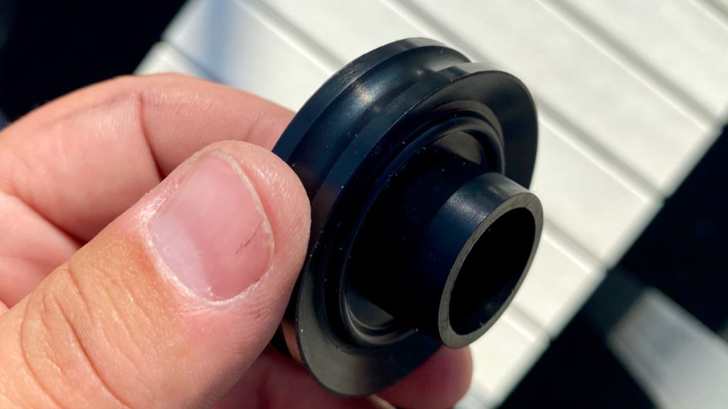 This is the rubber washer that goes between the bottom of the mounting bracket and the surface you’re mounting it to. The smaller inner part goes down the hole that you make for the NMEA 2000 cable. Sealant goes on very specific parts of this washer to ensure no water gets into the space below – make sure you follow the exact instructions though – there are some parts you do not want to seal to allow for maintenance.