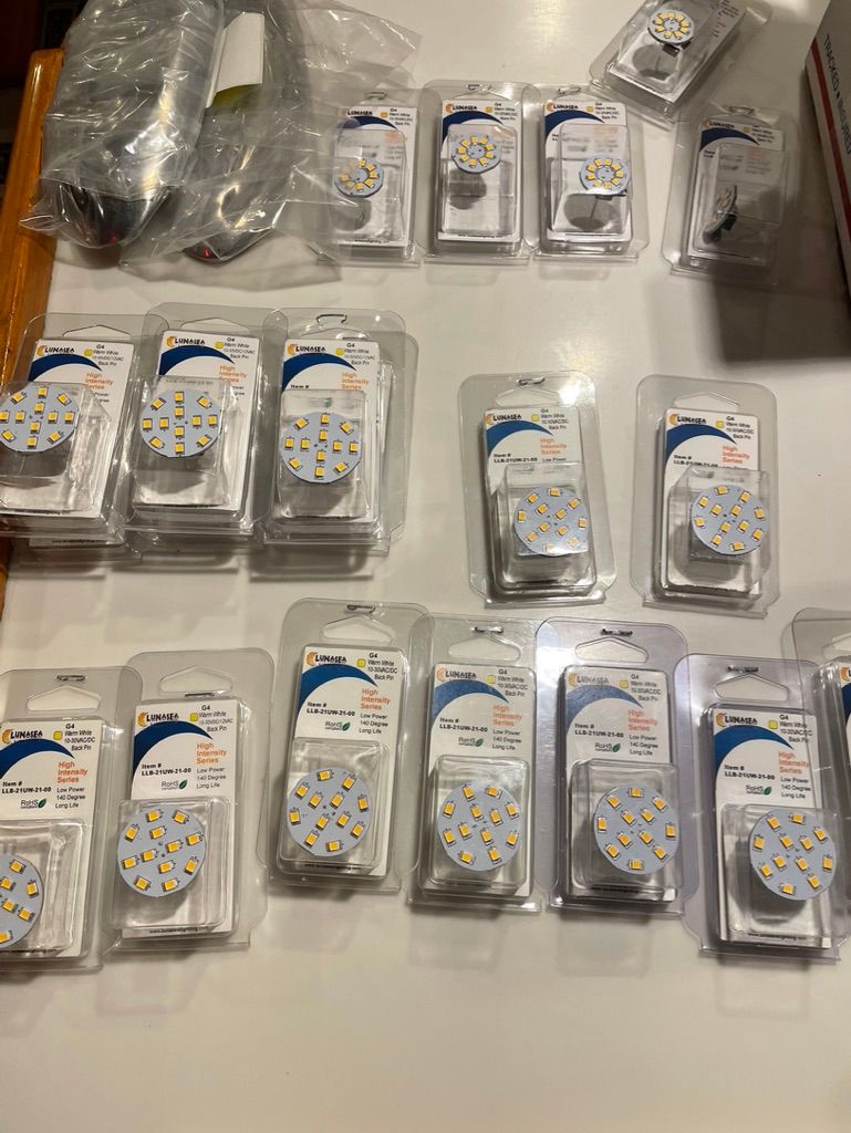 I have loved the quality and reliability of lights from LunaSea for a number of years and have talked about them before. I ordered various shades and types of lights from LunaSea, MarineBeam, and SailorSams. Hands down, the warm white lights from LunaSea provided the best coverage and most consistent warm white light without any issues. The other vendors had small issues like hot spots, weird noises when the bulbs were running, etc. After replacing all 33 lights, I was down to about 4-5 amps total consumption with all of them on versus 45 amps!