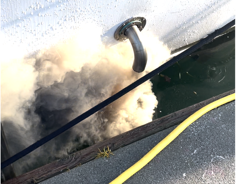 Our vessel also suffers from diesel exhaust smears since both the main engine and generator exhaust amidships on the hull of our Nauticat 43.