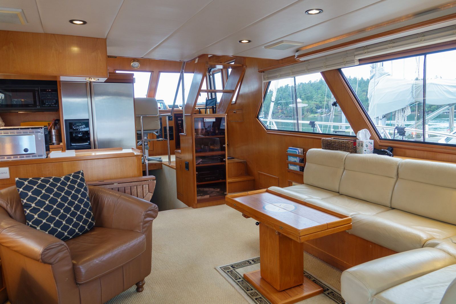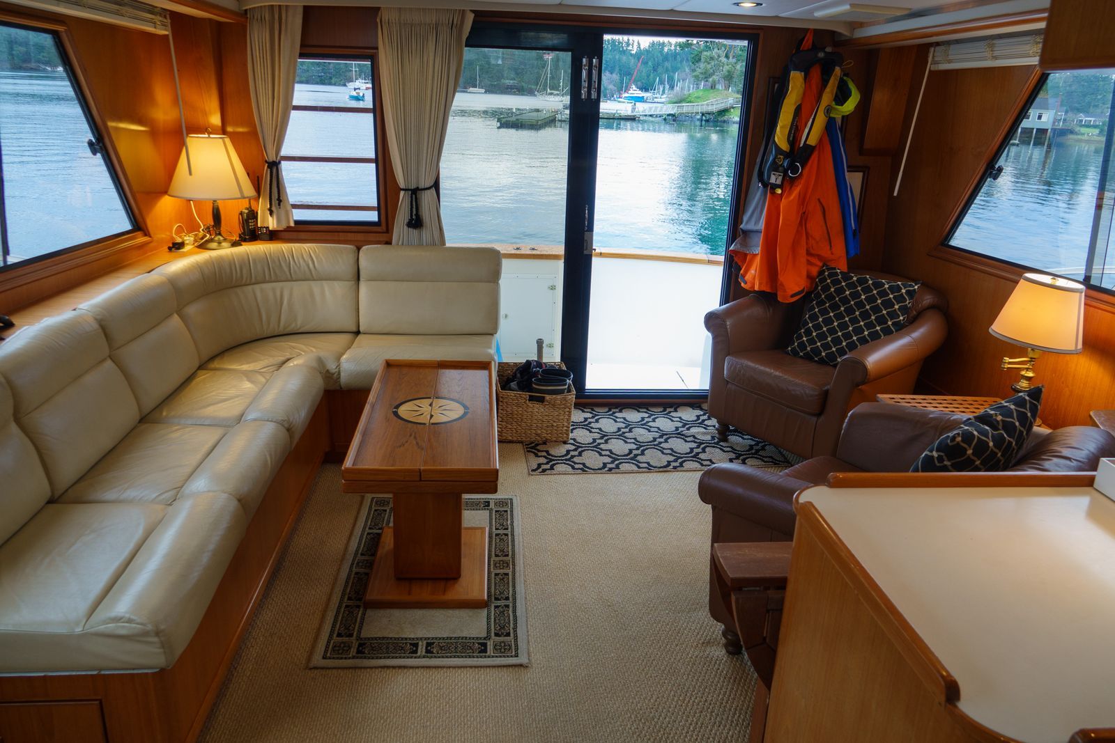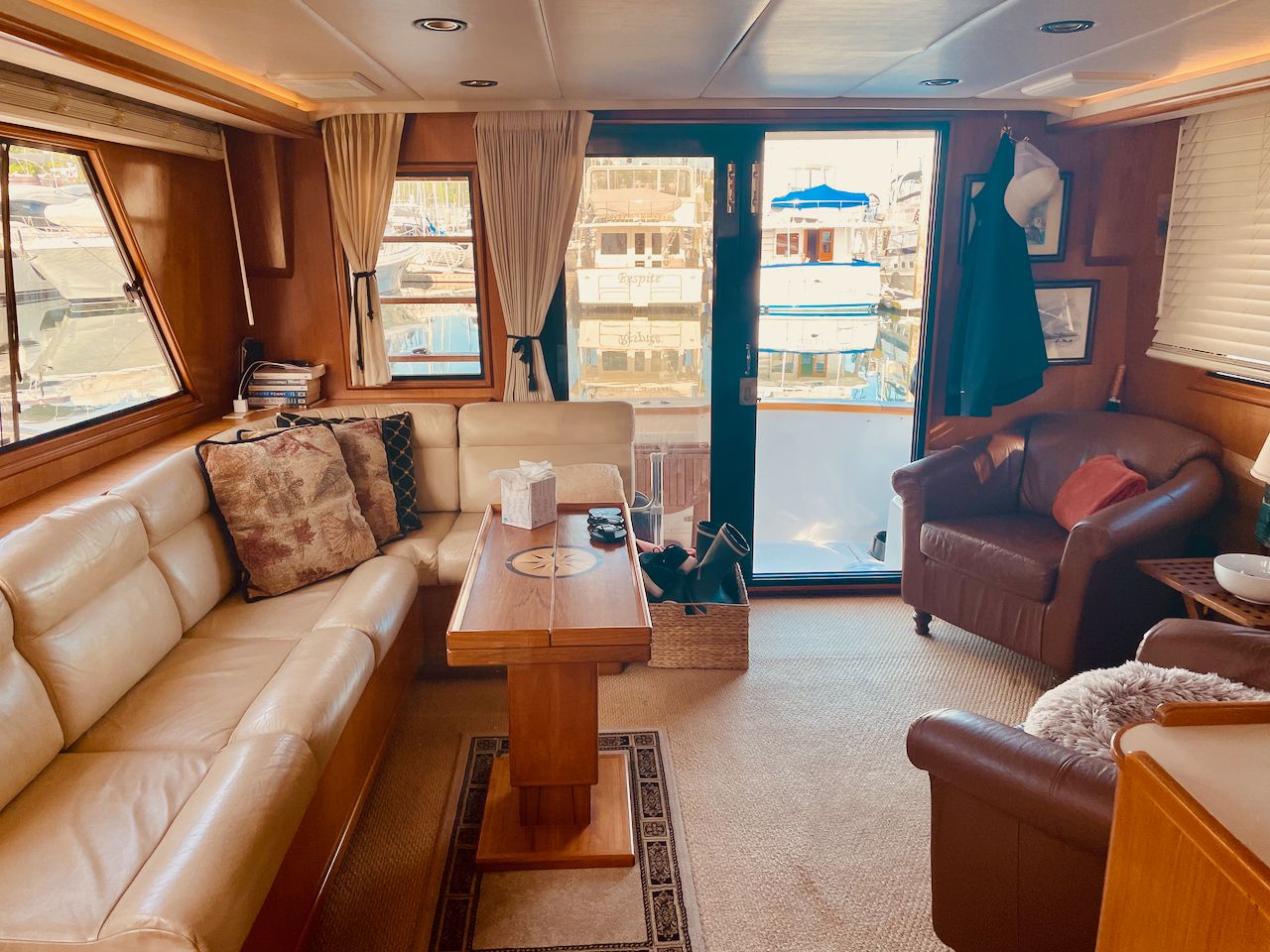 The space is generous everywhere and has been wonderful to be able to use. We've had plenty of folks aboard and been able to do a lot of entertaining without the challenges of previous boats. Having clear views from all of the upper areas outside makes it enjoyable as well even if you are in the galley cooking.
