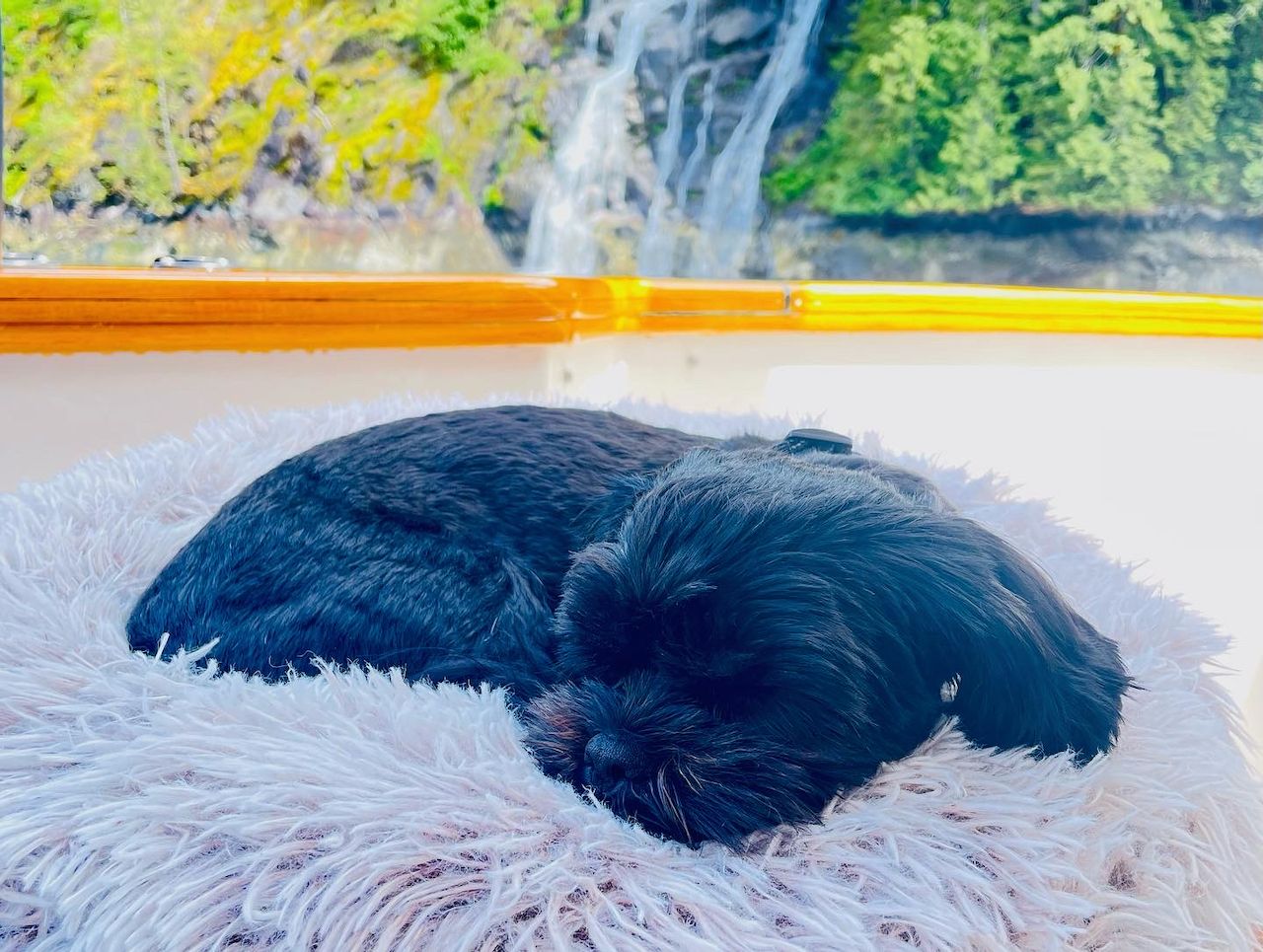I'm looking forward to the next 8 months and more projects and improvements along the way. So far, we love Kaos and hope to experience even more wonderful sunsets and calm anchorages in the future, and hope I can sleep as peacefully as Frannie does when we're near our next waterfall!