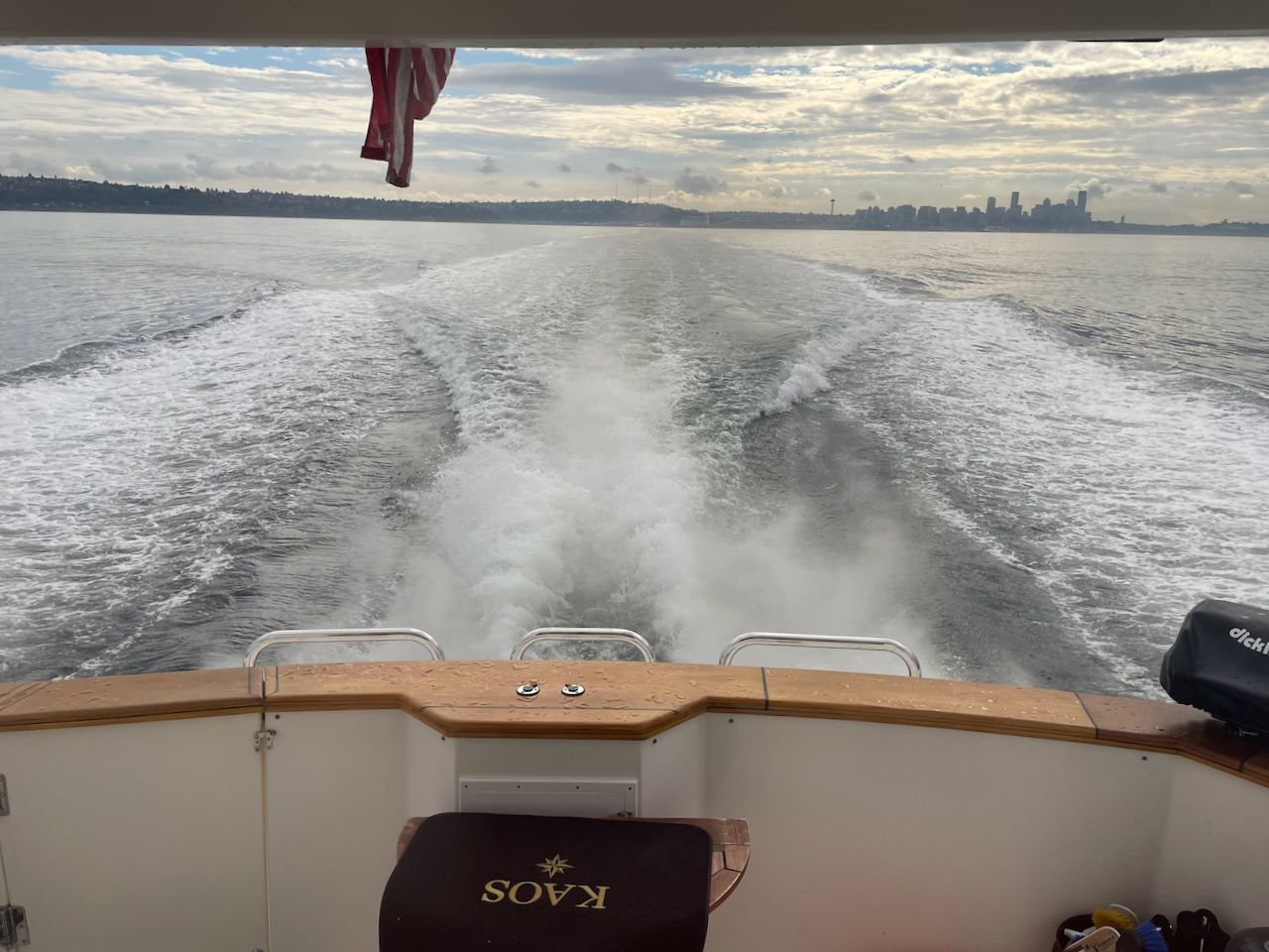 Around 2300 RPM we do between 17-18 knots and the boat really firms up. Her hull is built to be at this speed most of the time, and it shows. It almost feels like she is planing or at least partially planing, and the wake gets a lot smaller and less terrifying. I haven't worked out the fuel burn at this rate, but I know it isn't going to be as optimal as trawler speeds.