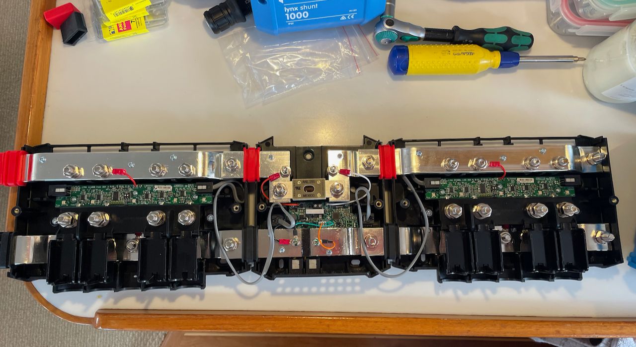 Hi Steve, I’m not sure you understood my comment about the Victron BMS wiring from battery to BMS device - it really is a series connection - if any one battery (or cable) fails, the BMS “big switches” in your Lynx will open and darken your 24V load buss. Try it when nothing critical is going on - unscrew any one connection and see what happens. If you have a battery control board fail, you’ll have to ID which battery it is, then reconfigure the BMS cables so its no longer in the loop. It might be easier to just put an extension across the two connections on your Lynx SmartBMS (at least the lights will come back on!).