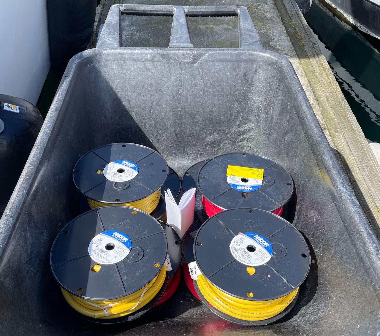 I also needed a new set of wires from the inverters back up to the AC panel, as the previous inverter was only powering a small part of the AC panel, and I was moving everything over to run through the inverters. I chose some beefy 6 AWG wires with four conductors in them. I had to run it from the pilot house down the side of the boat and into the engine room. Thankfully Kaos has a cable tray the whole way, and it was pretty easy! That's a rarity based on previous boats and customer installs.