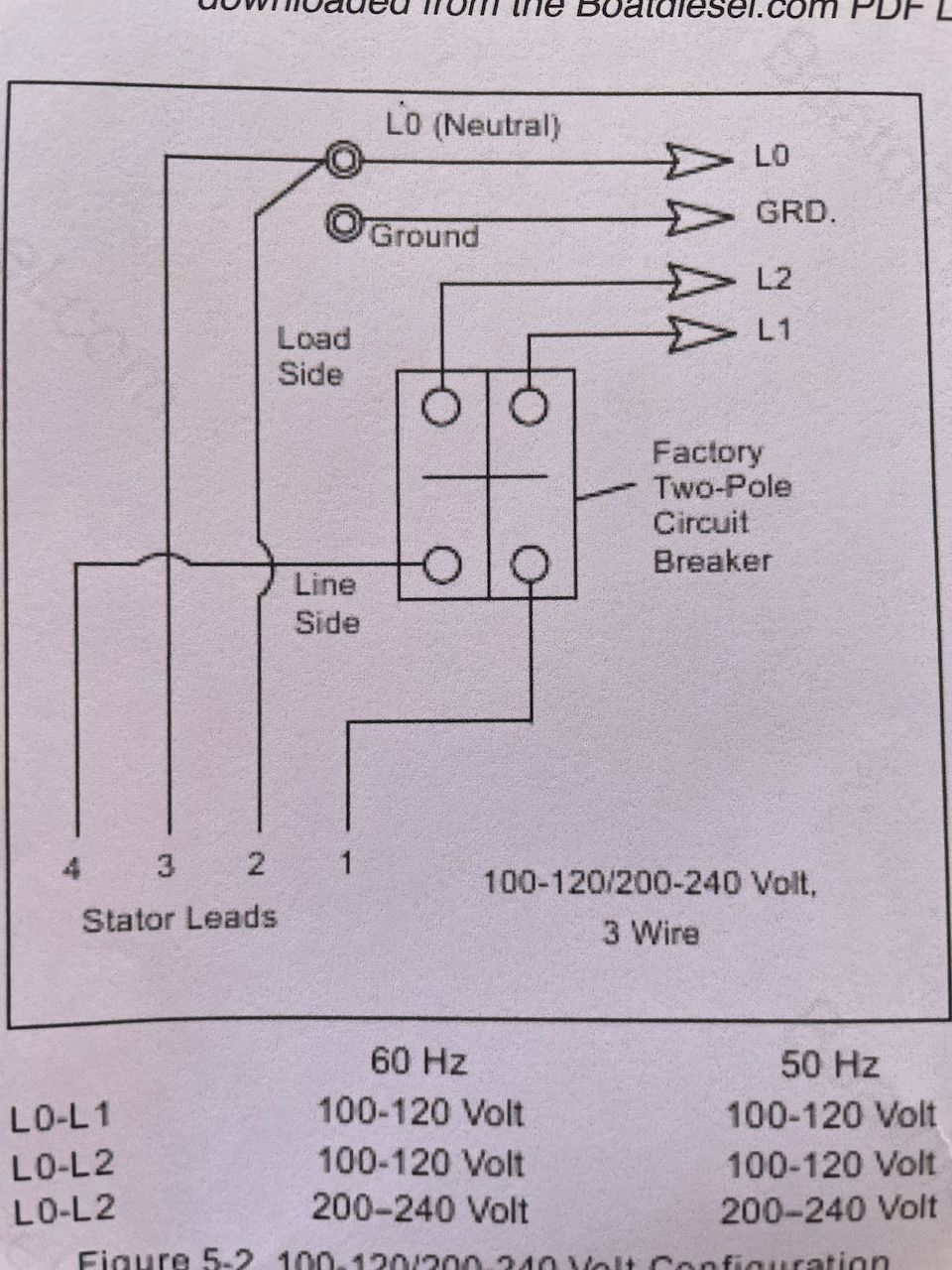 The other wild card was the 13kW Kohler generator. It came wired as a 120 volt AC system, but I had hopes that I could convert it to 240 volt AC given that I knew of two other people with the same unit who had that configuration already. Unfortunately, after a week of experimentation, I was not able to get it to work correctly at 240 volts, and even had a thread on Trawler Forum looking for advice.
