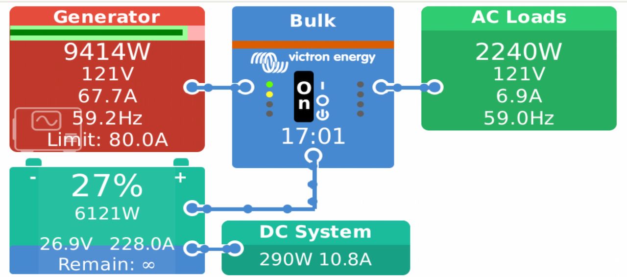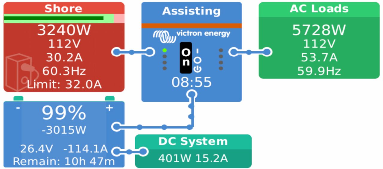 Nevertheless, I had become addicted to features like Power Assist, the online VRM portal, and the lovely GX-series screens and data that you can see about your power system. So Victron it was....