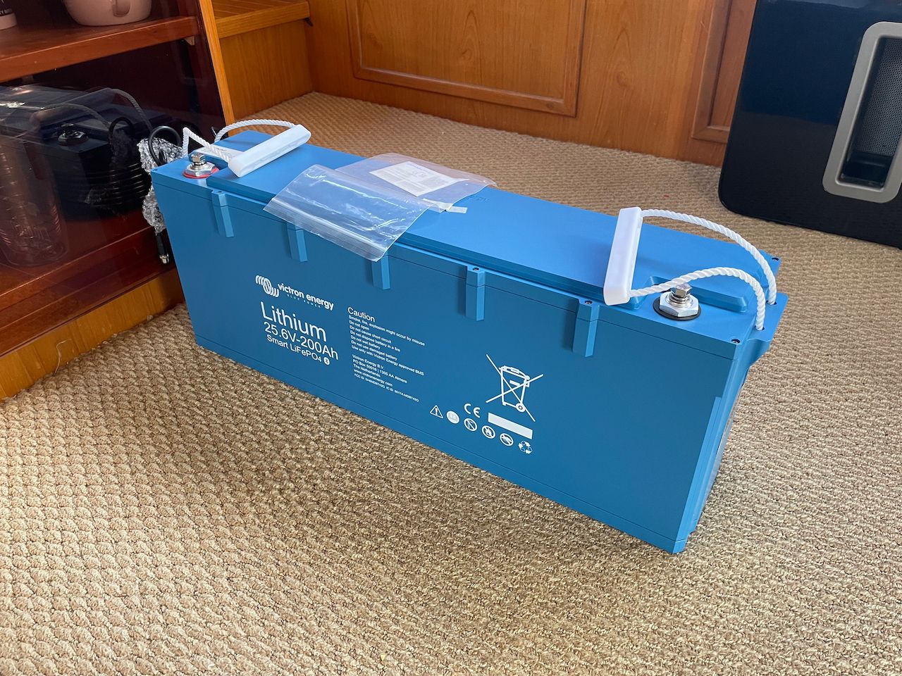 Victron released a newer version of their 24 volt, 200 amp hour LiFePO4 battery around the time I was doing my installation. They are the LFP-Smart 25.6/200-a model and are quite a bit nicer than the previous versions.