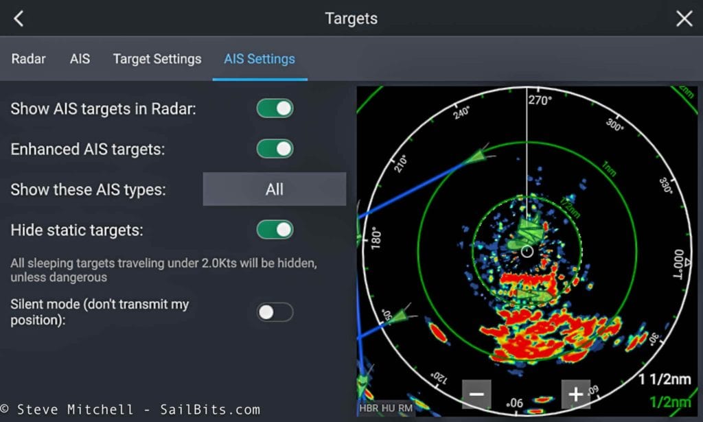 The best feature in my opinion is the ability to add AIS tracked targets to the radar overlay. You can adjust what to show in terms of AIS ships, as well as hide static items. Combine this with trails and history, and you have even more situational awareness of whats around you.