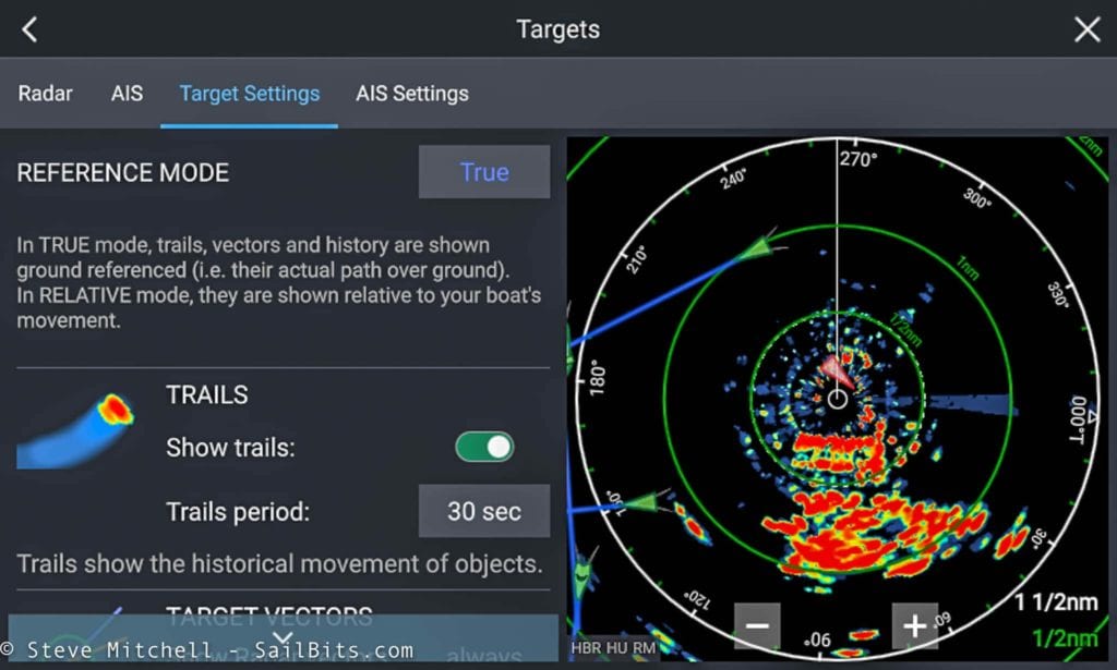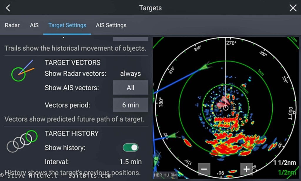 The radar features have the most updates that I liked. Under settings, you can now add trails which make it very easy to see the past track of targets. You can adjust the length of time for the trails in case you want longer history.