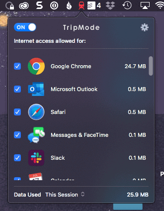 The one I use the most is called TripMode, and allows you to flag particular WiFi networks AND applications that you want to allow. This allows for very granular control that could be completely different on every network, depending on what you’re doing. It is very easy to use – just turn it on when you’re on the particular WiFi network, and a list of programs trying to access the Internet will start showing up. Put a check box next to the ones you want to enable, and you’re done.