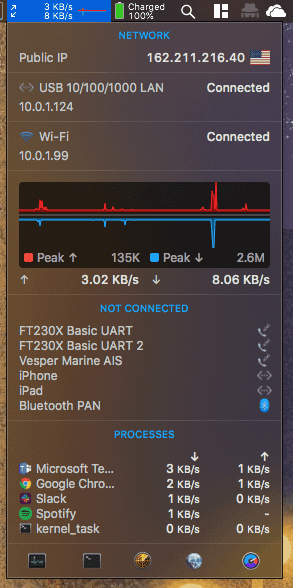 I’ve used this app for years on the Mac as a way to keep an eye on the network, CPU, and many other aspects. On a boat, though, it is great to see quickly if your computer is the cause of why the connection is slow, just with a click on a tool bar icon.
