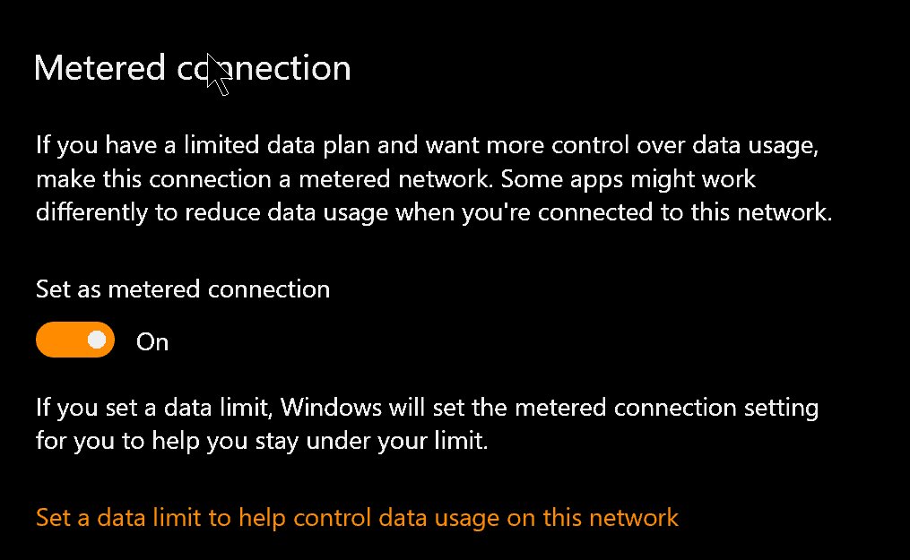 While the Metered network setting attempts to slow down the amount of data used, programs and apps running on Windows 10 must support it. I’ve seen a very popular navigation application completely ignore this time and time again, and update hundreds of maps, completely overwhelming my network connection.