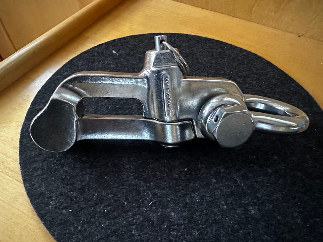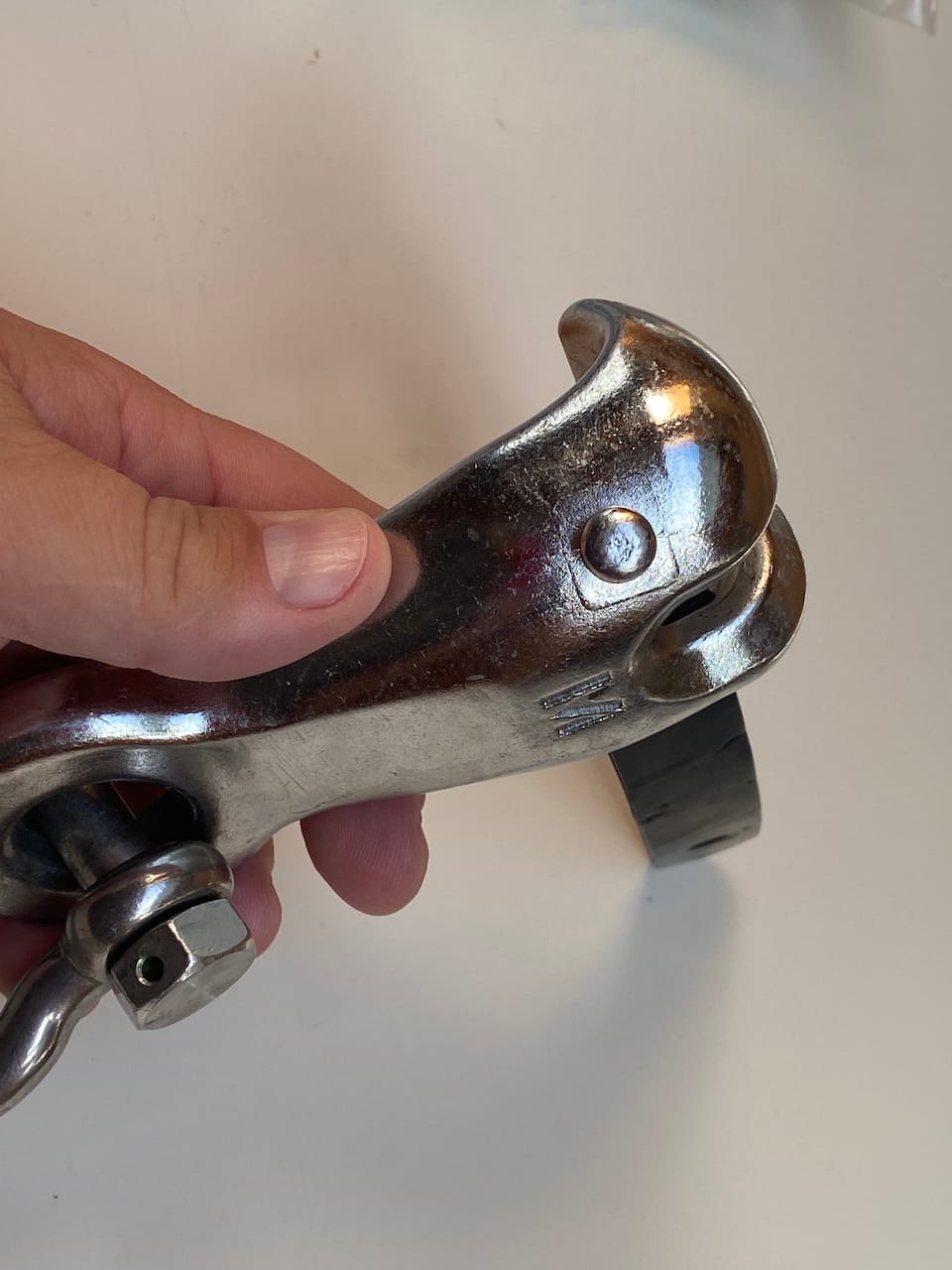 The v1 hook was promising - very beefy construction, but it kept the chain at a bit of a side-load, and was a nightmare getting through the bow roller. The plastic retaining piece always worried me, even though it never broke, I was worried about it sliding down and releasing the chain. I used it for a long while, but didn't love it.