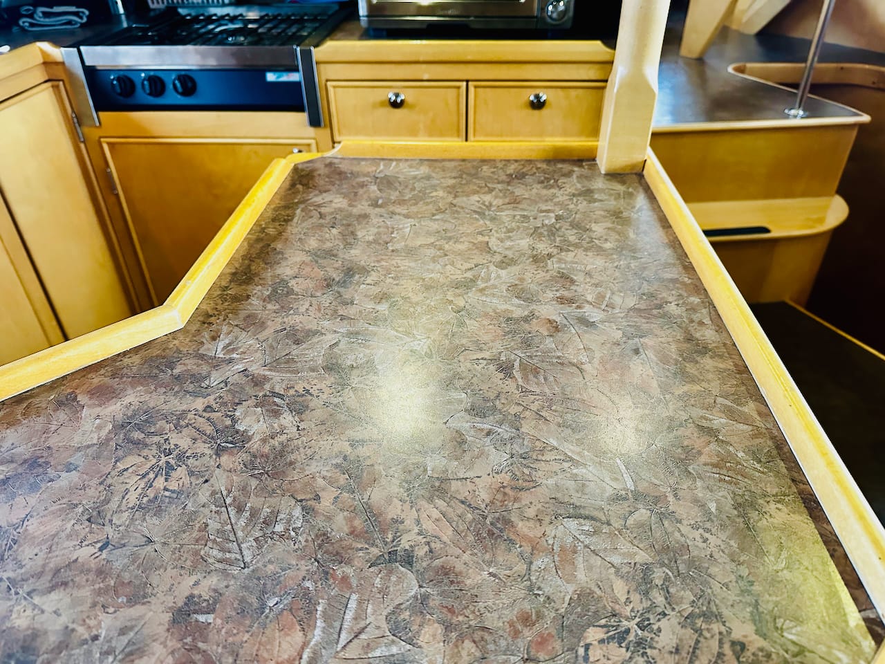 The counter tops throughout the boat are all some sort of Formica or similar, and the pattern doesn't seem to match the rest of the boat. I'm not a fan of the color or pattern, so this is something I'd like to change.