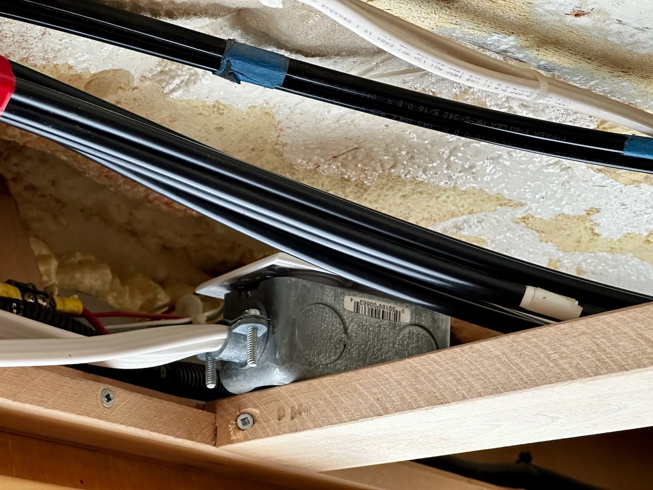 I've found at least 10 AC outlets that are in places for expansion, but unused at this time. This particular one is above the pilot house in a void behind all of the radios and overhead instruments. I love how someone thought ahead of time about expansion and adding equipment, and while access was likely easier, simply added an outlet here for the future. It's exactly how I would build a boat myself.