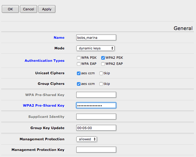 Click Apply, and you have a Security Profile you can associate with the WiFi adapter for the network in question.