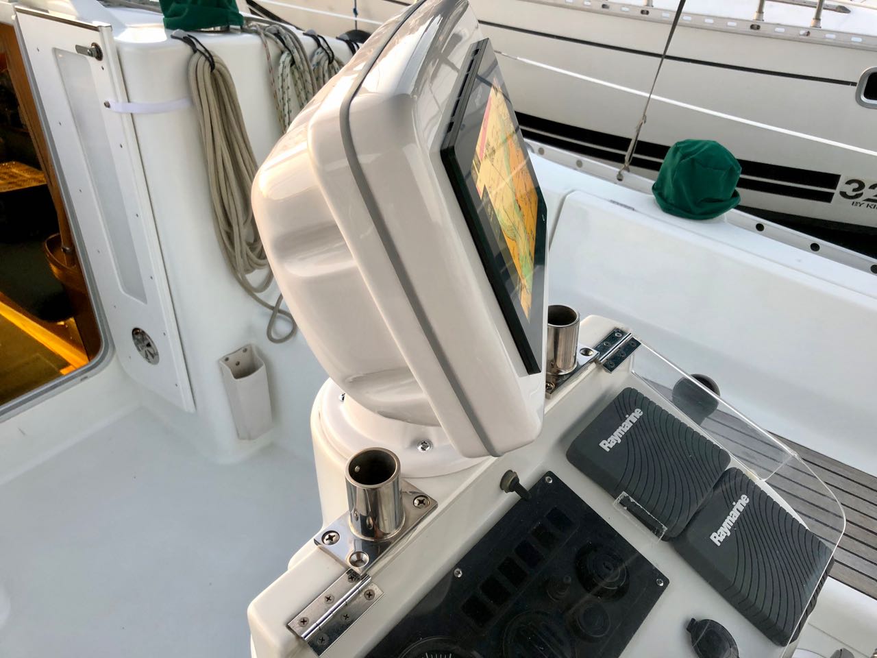 My helm station has always been an area of continued improvement. When I first bought Grace in 2015, she had no chart plotter or other instruments – only older Raymarine ST series depth and wind instruments. I added a bigger angle guard and NavPod to allow for mounting more instruments, and for crew convenience. The last 6 months of longer trips had shown a flaw in this design – constant cracking noises and screws coming loose that held the helm station together. After the last long trip, serious damage was starting to look likely, so I decided to pull apart the entire setup and figure out what had happened.