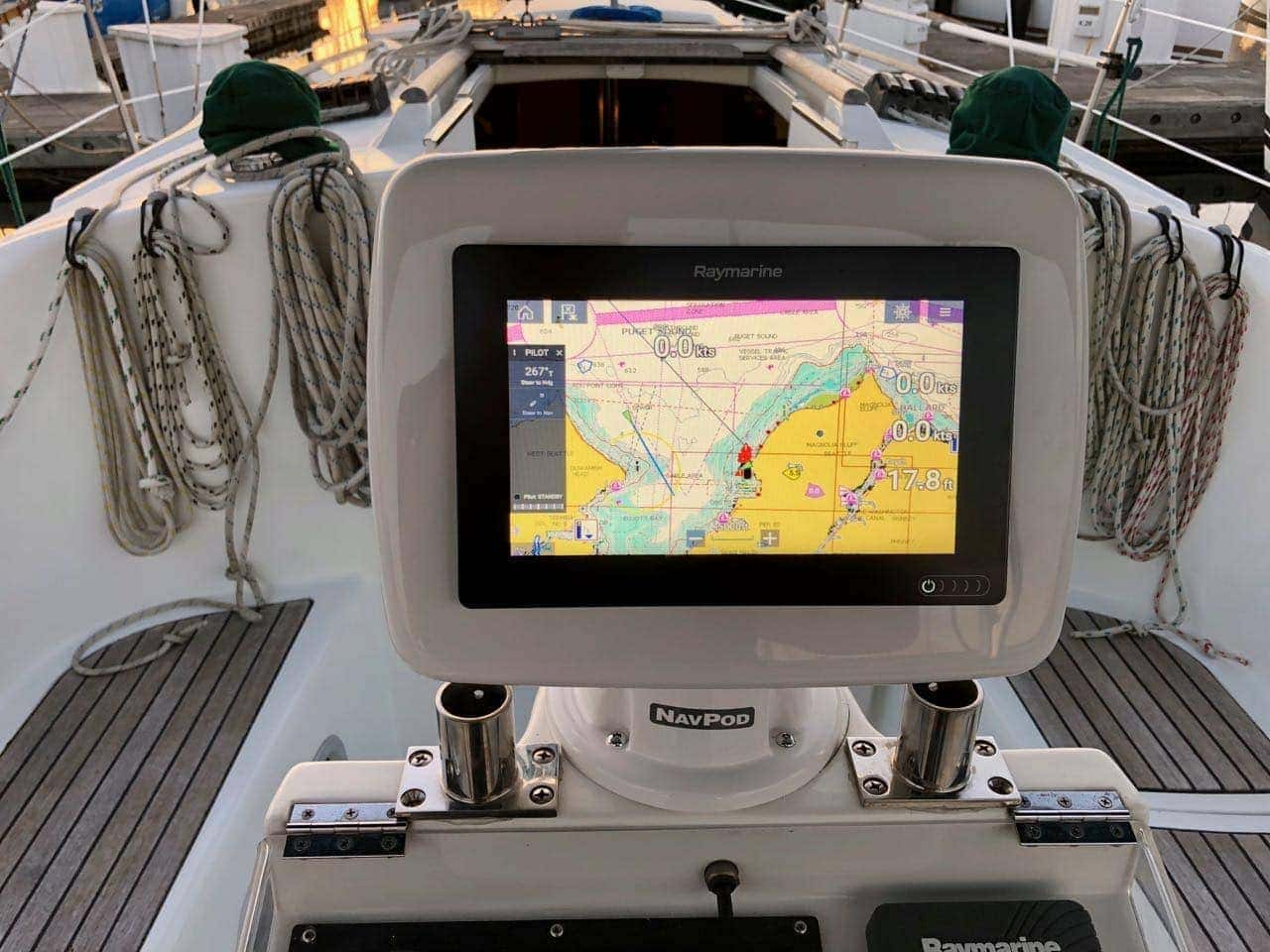 After some discussions with various folks, we came across the idea of displacing the rather large compass seen in the picture above, and using that as a base for instruments. Off I went to Ocean Equipment’s website looking for a new NavPod!