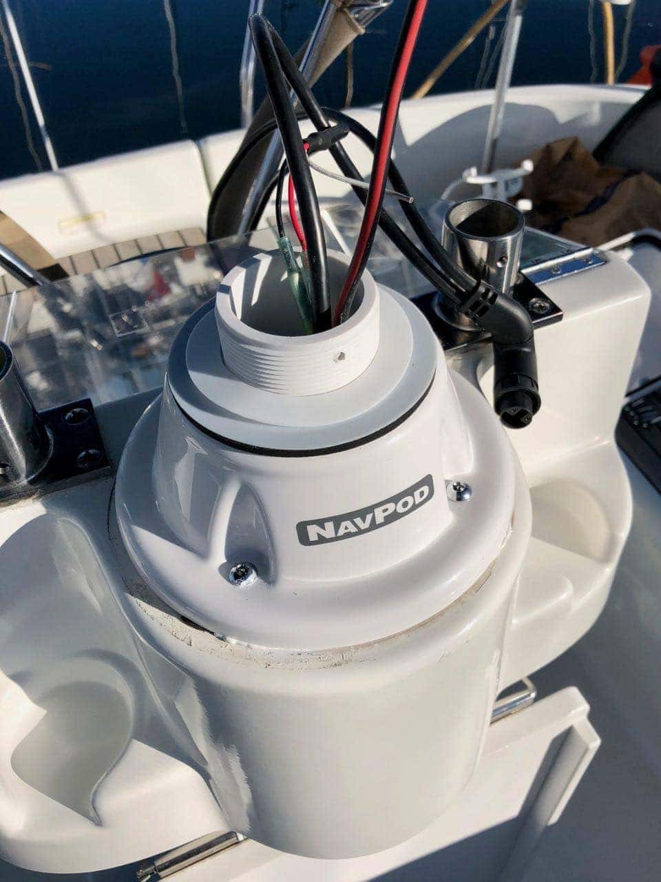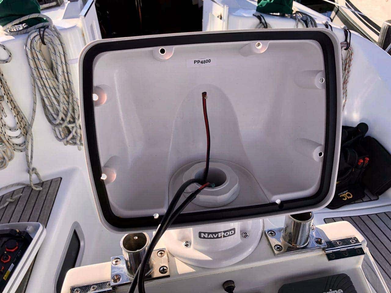 Unfortunately, I could not find something pre-built that would work perfectly, so I dashed off an email to Reed @ Ocean Equipment. Within a day, he had answered with a number of options, including System Pods mounted on the tees coming up out of the station, and a far more elegant solution of using a PowerPod, model PP4800-07. PowerPods are usually not meant for sailboats, and this particular one has a base that is way too large for the 7″ opening where the compass resides.