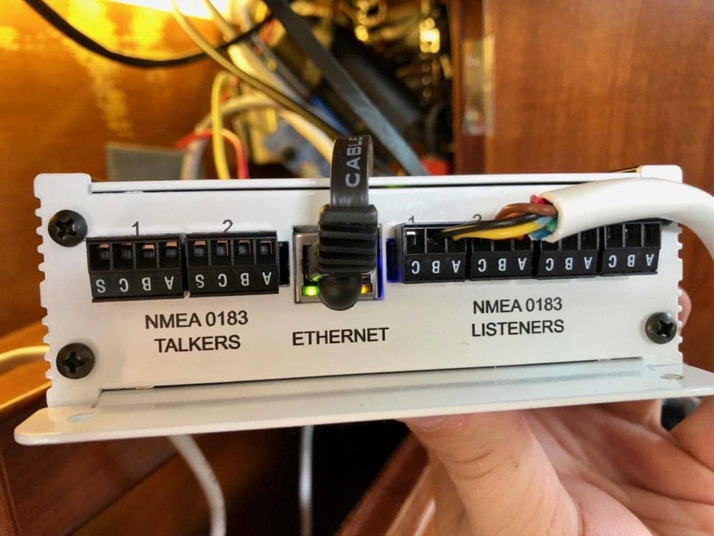 Using a chart plotter is also an option to connect NMEA 0183 and 2000 together. Most of the main manufacturers have at least one NMEA 0183 input and output, some have a few more. The challenge for most configs is cabling length from the 0183 devices to the chart plotter, and the limited configuration options. Most only allow you to connect a VHF radio or AIS device, and have limited control over the sentences that come and go between them. There are forum posts filled with people trying to decode what chart plotters allow through or translate back and forth. You also still have the limitation of only one or two NMEA 0183 devices, and most chart plotters don’t stream data out to other devices very well.