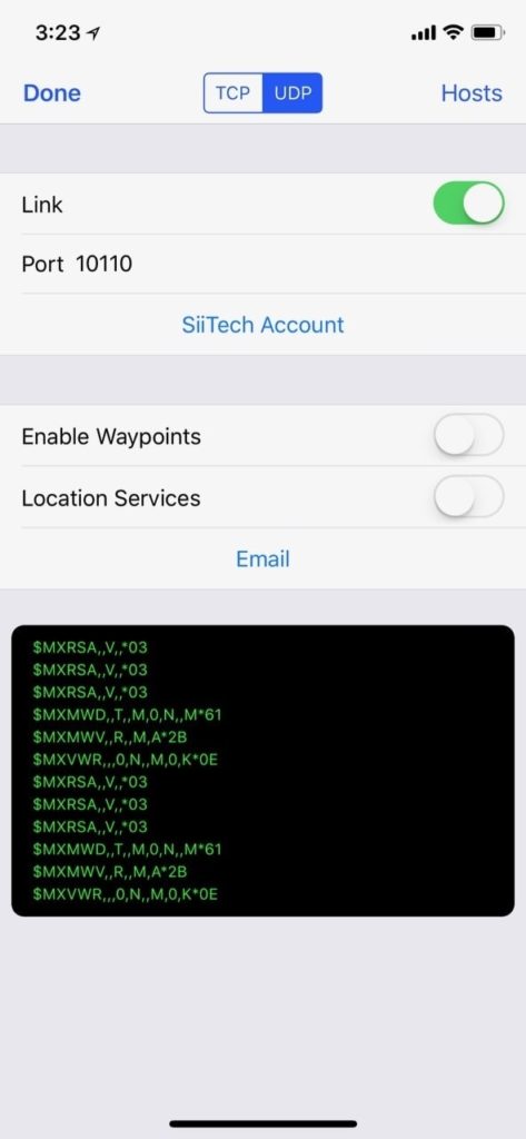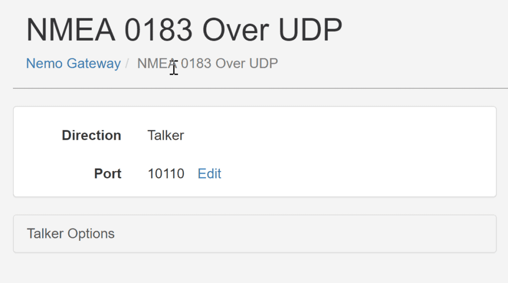 For mobile apps that need NMEA 0183 over your ethernet network, like iNavX, NMEAremote and others, you can configure NMEA 0183 over UDP. This sends out a UDP stream of NMEA 0183 data on port 10110 that you can use with other apps.