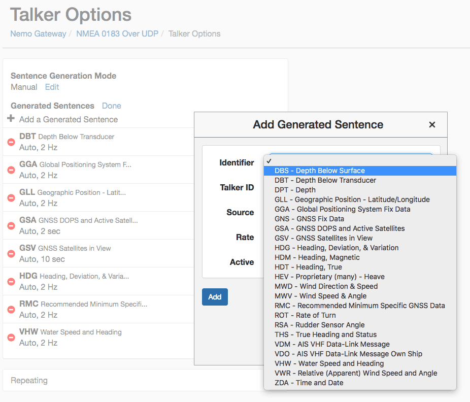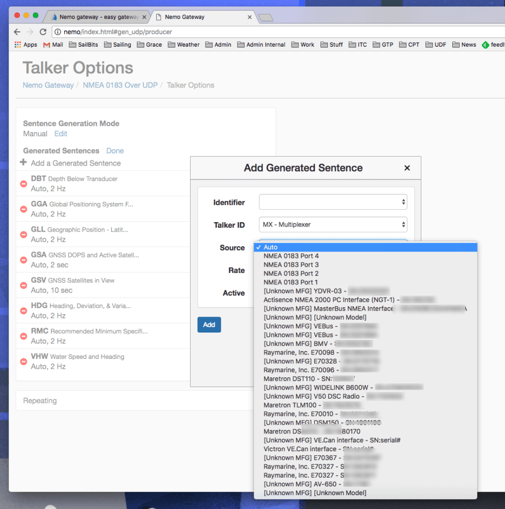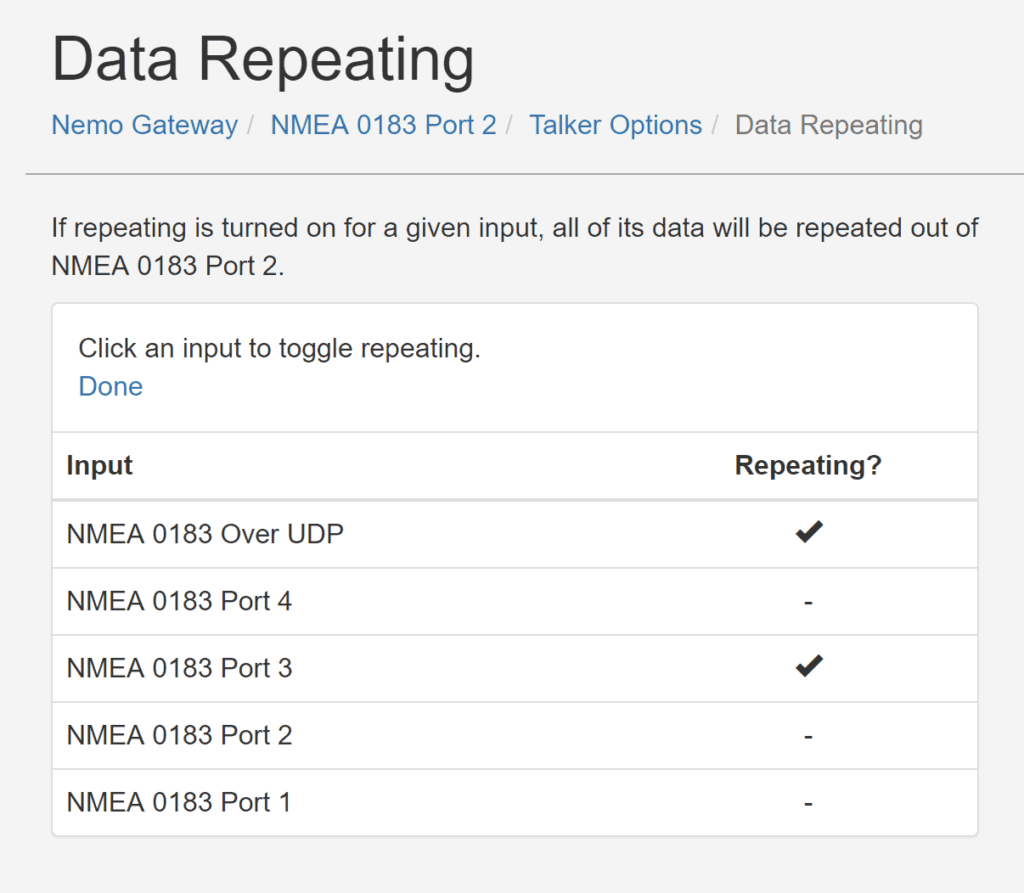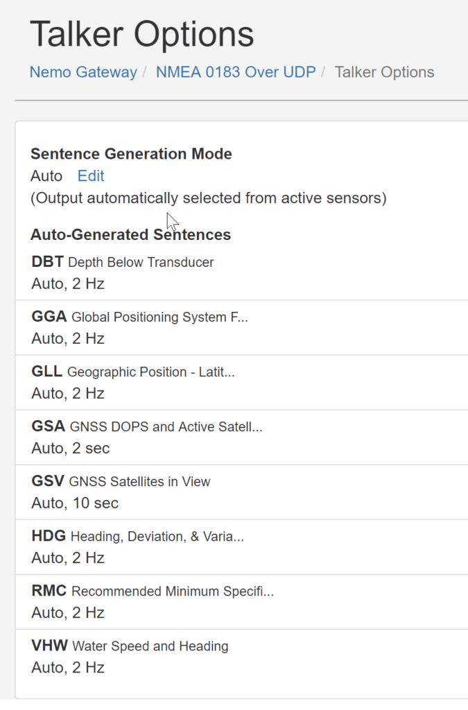 One of the most important parts of a gateway is to be able to unify the different networks together, and the Nemo doesn’t disappoint here either. Devices on NMEA 0183 can send things to the gateway, which are sent through to NMEA 2000 and vise versa. With the options above for granular control over sentence generation on NMEA 0183, you have a lot of flexibility as to what you’d like to send where, from where, and how frequently.