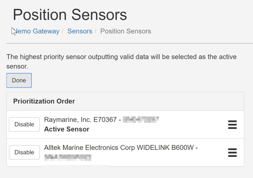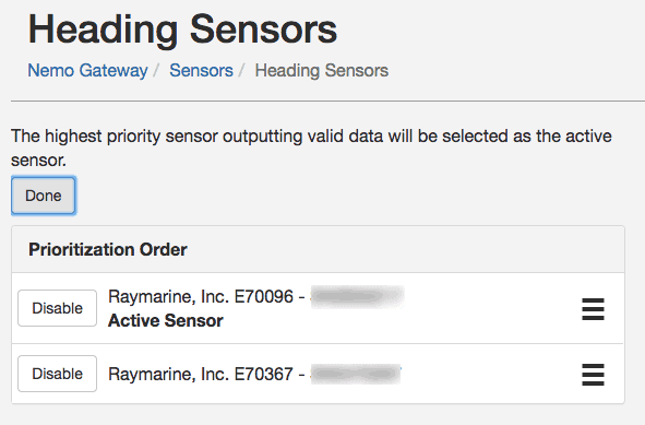 In addition, if you have multiple sensors for Depth, Heading, Position or Speed, you can create a prioritized list of the available sensors so that the one you consider best is used first. In the event that the primary fails, secondary items are used. I have at least 3 heading sensors (Raymarine chart plotter, Raymarine autopilot, AIS) and multiple position sensors (Raymarine chart plotter, AIS, VHF) and this allows me to make sure the one I trust the most is used if it is on and functioning.