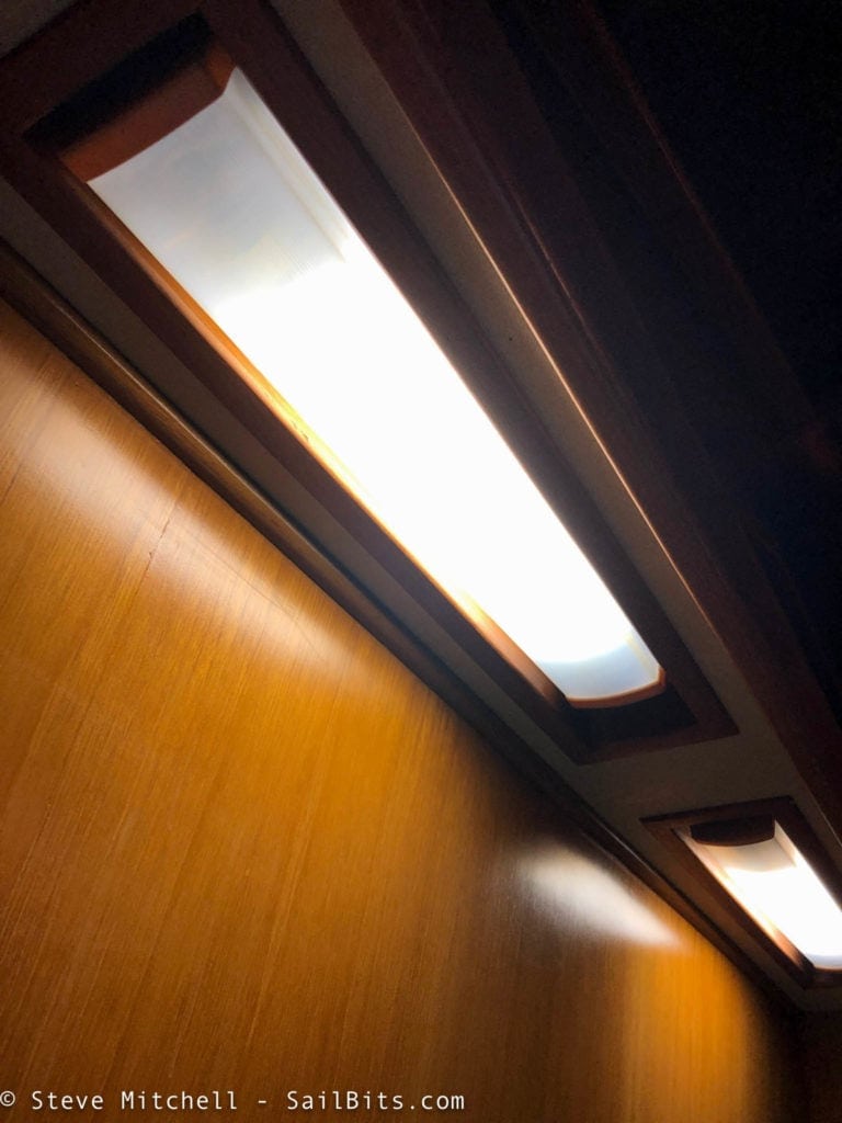 Rendezvous was very well built and came with light fixtures in more places than any boat I have ever owned. Still, they were mostly incandescent or compact fluorescent, and in some cases had been upgraded to LED, but the colors were wrong. I have always had lighting as one of my top priorities on the boat, not necessarily just because of how it looks, but how it makes the space feel more inviting, usable, and safe.