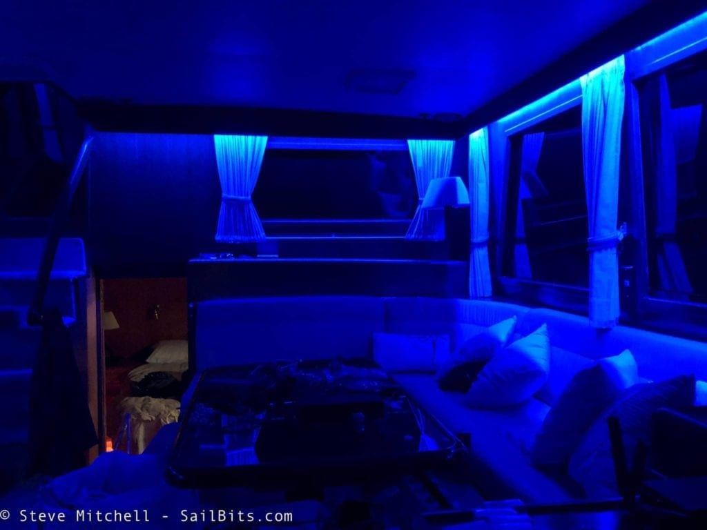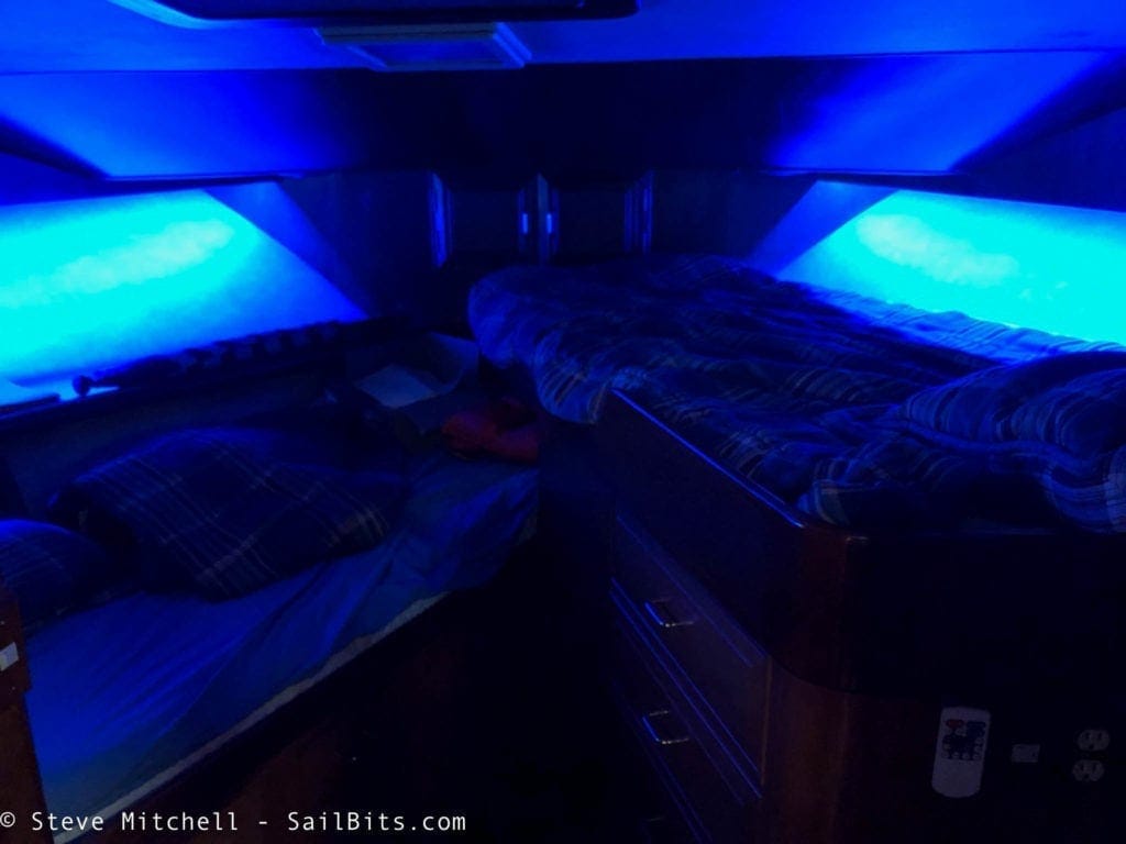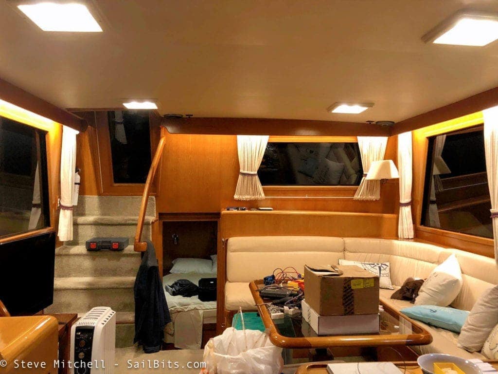 I am very happy with the overall results. The light is warmer everywhere, and can be dimmed and controlled. I can change lights to various colors throughout the boat as well. I’ve improved safety in many areas by having more light, or light where there was none before, and provided a way to control it remotely when approaching the boat. I’ve also dramatically reduced the amount of power we use, which means less generator time, and more battery power for other things.