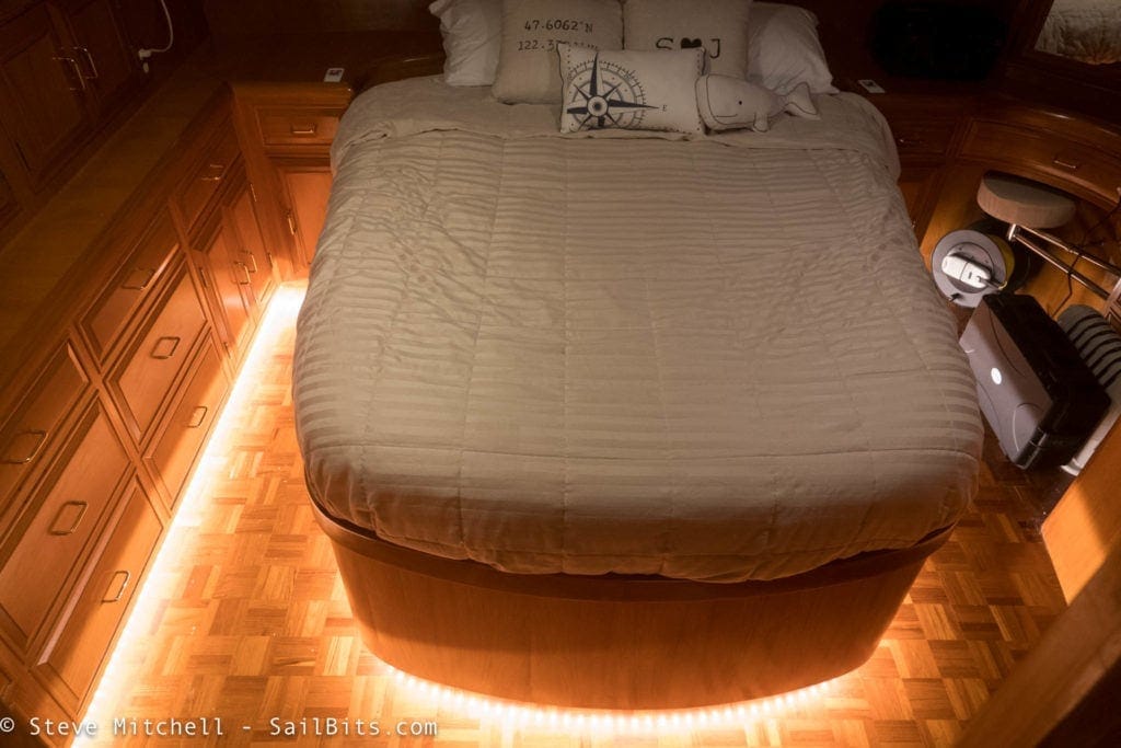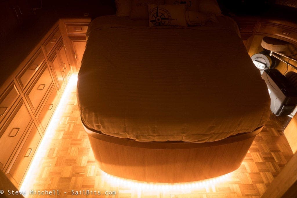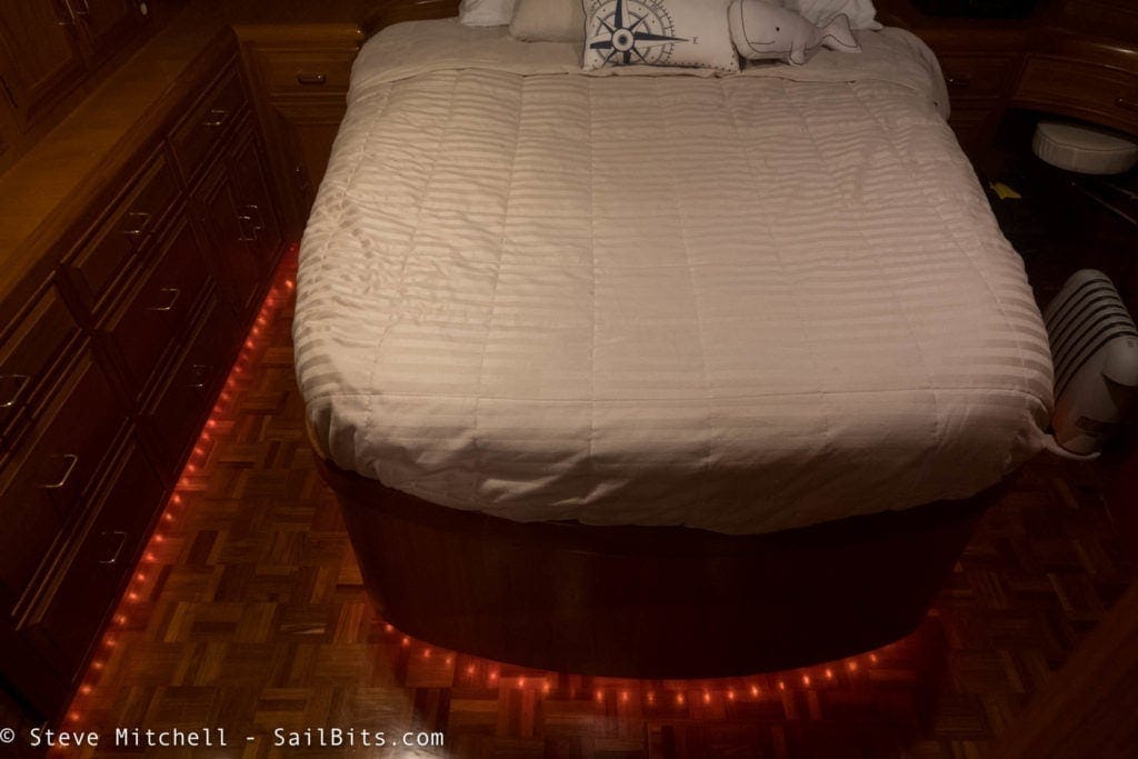 A nice side effect is that the strips also point towards the master head, so at night when they are on, you have a path to the facilities if you need them.
