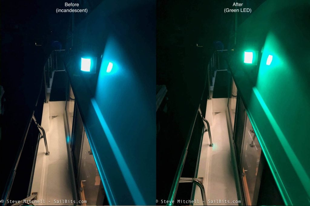 I think it is a good idea to update them even though you are likely to have your engine on and alternator charging while using them, and aren’t worried about the power draw. First, you will often forget to turn them off (I have) and if they’re not LED, they wear out faster. Second, you may also not use the navigation lights that often (I don’t) and by having LEDs, you can be more sure they will work when you need them. For me, it is more about the fact that LEDs are more likely to work, be just as bright (if purchased correctly) than anything about power savings. Anchor lights are a different scenario covered below.